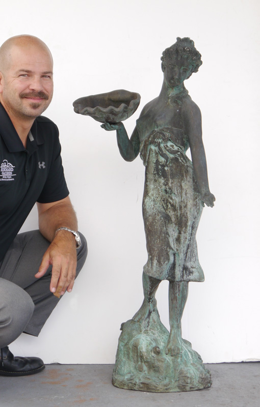 LARGE FIGURAL NOUVEAU NUDE MAIDEN BRONZE FOUNTAIN: 41'' h., illegible inscription to base.