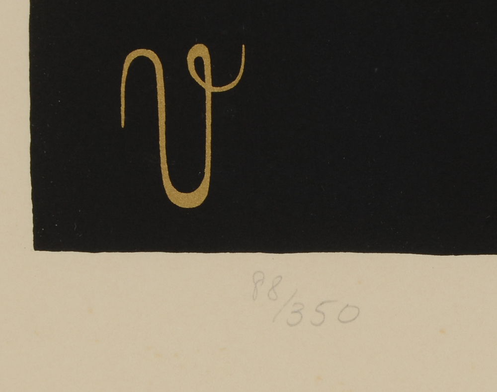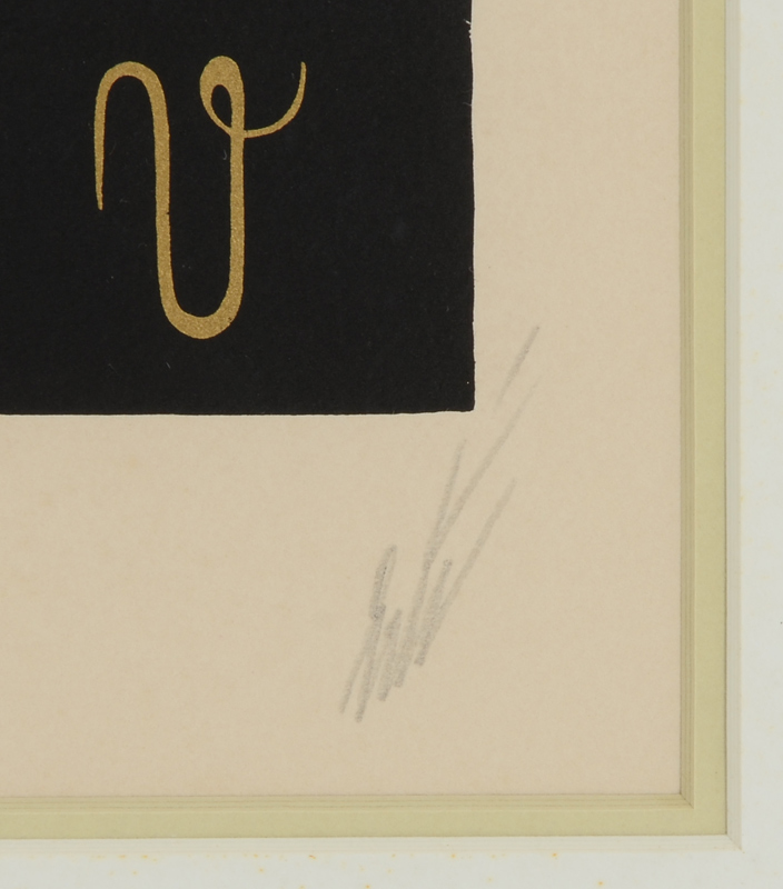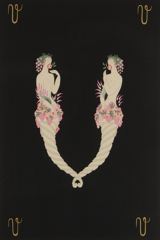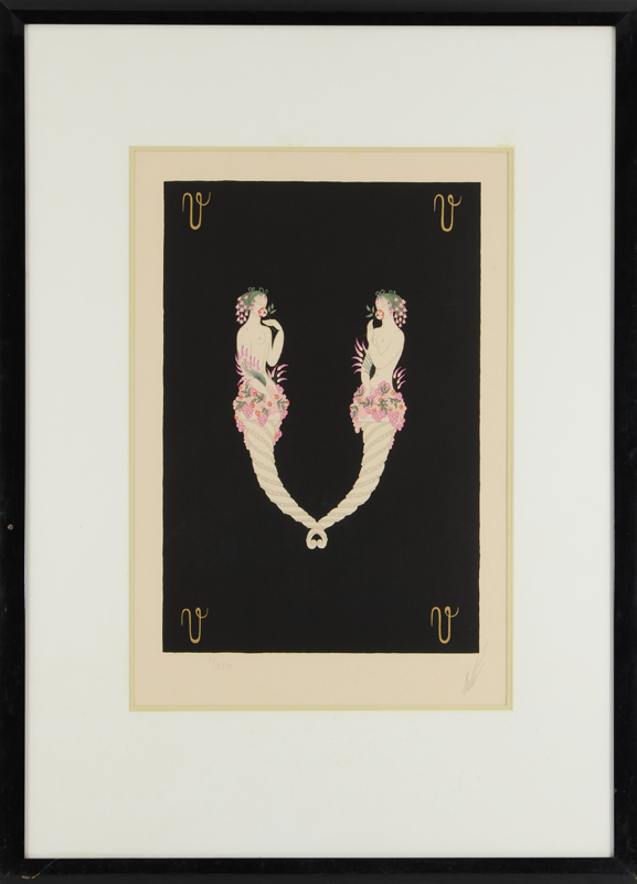 ERTE ''V'' ALPHABET SUITE LITHOGRAPH: Sight size 18 1/4'' x 12 1/4'', pencil signed lower right, #'d 88/250 lower left, black lacquered frame 29 1/2'' x 21 1/2''.