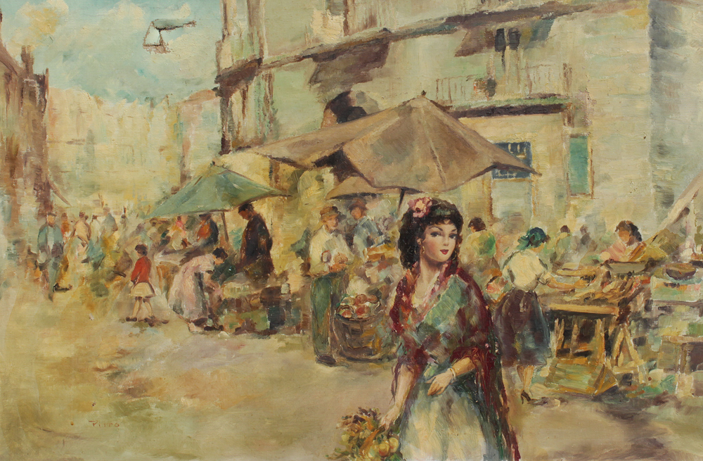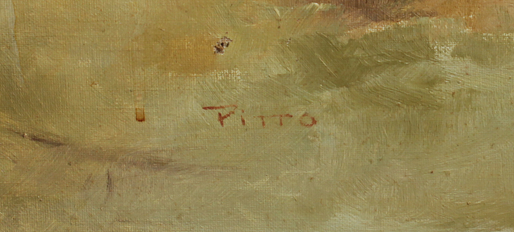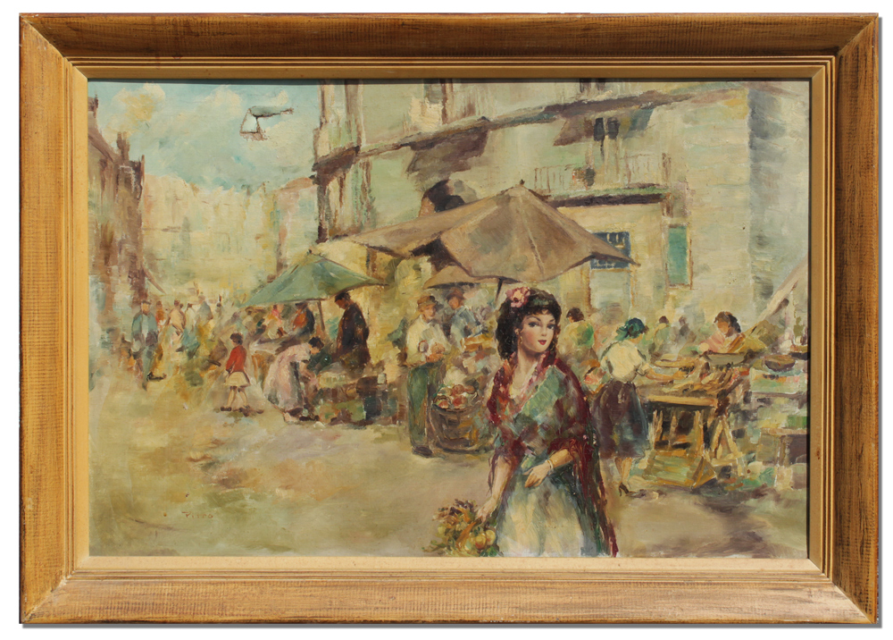 PITTO, Guiseppe, (Italian, 1857-1928): Young Beauty in a Market Scene, Oil/Canvas, 24'' x 36'', signed lower left, painted frame 30'' x 42''.