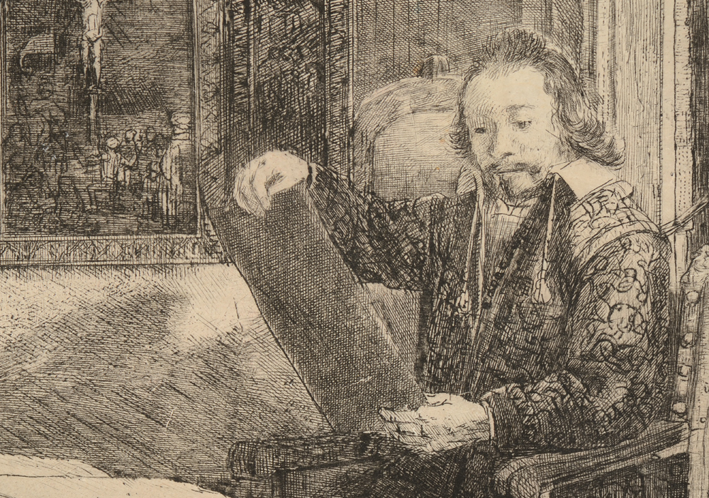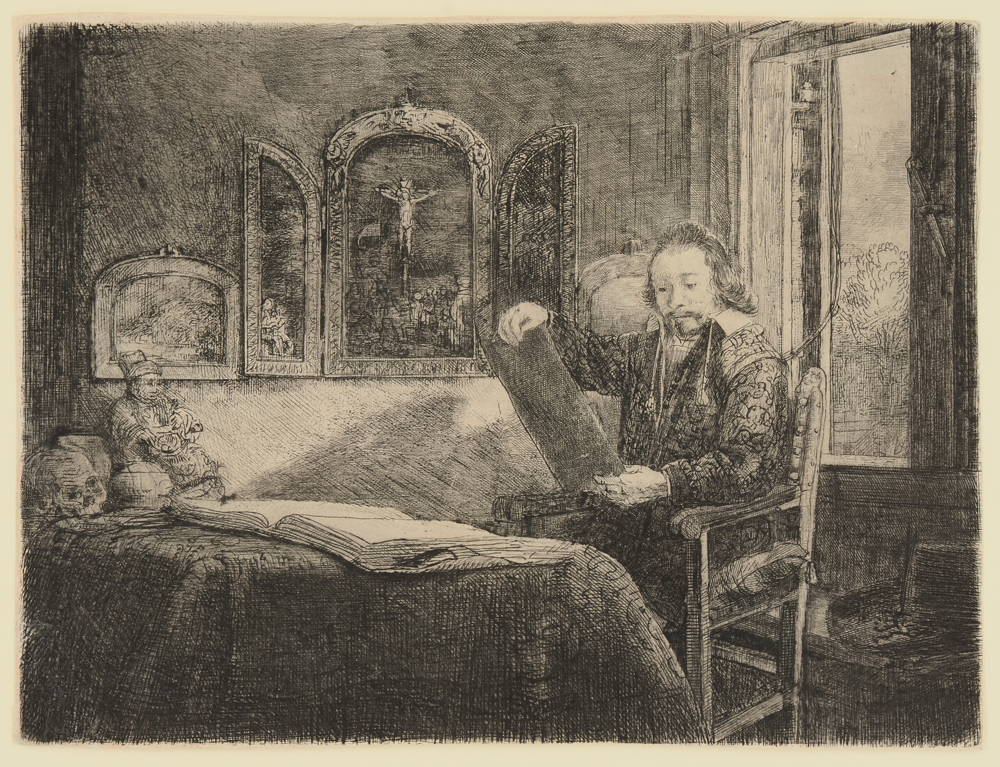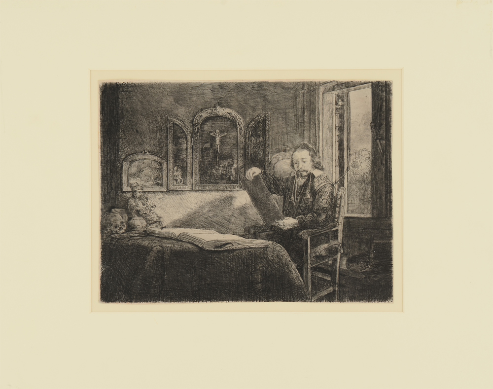 REMBRANDT VAN RIJN, (Dutch, 1606-1669): ''Abraham Francen, Apothecary'', Etching, c. 1657, 6 1/4'' x 8 1/2'', thread margins, matted, 11'' x 14''.