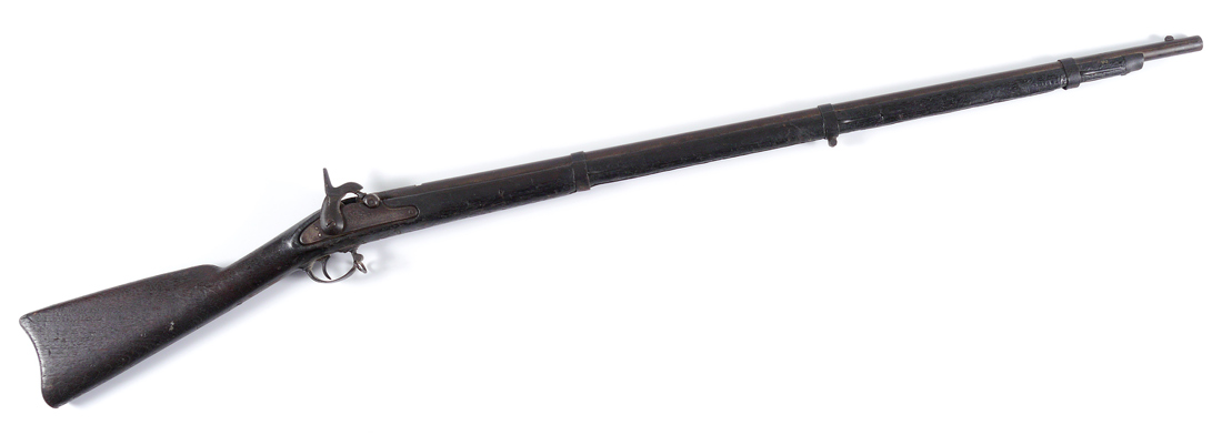 CIVIL WAR ERA WHITNEYVILLE MODEL 1861 RIFLE: 40'' round .58 caliber barrel, walnut full stock with 3 bands. Lockplate marked Whitneyville, dated 1863. Action currently working, overall measures 56 1/8''.
