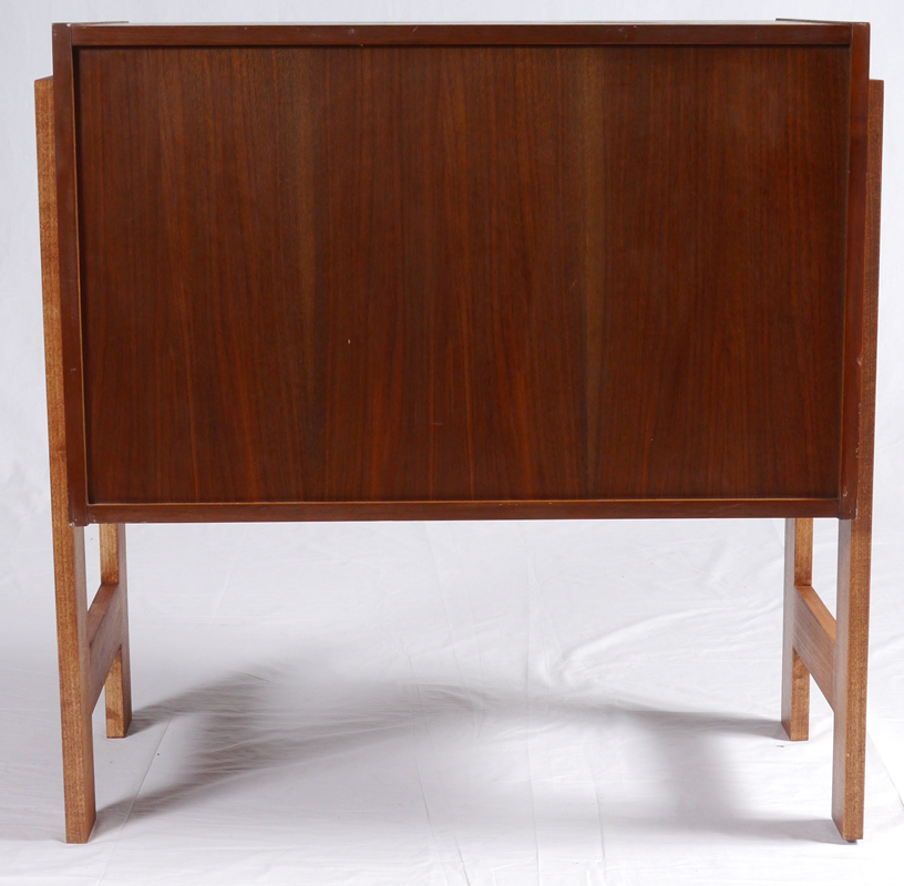 MID CENTURY MODERN TEAK 3 DRAWER CHEST: Chest on legs, no visible makers mark, overall measures 28 3/4'' h. x 28 1/2'' x 16 1/4''.