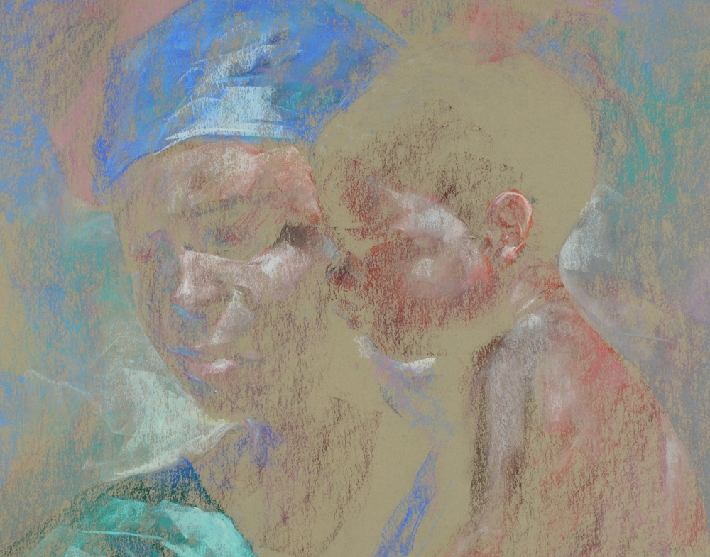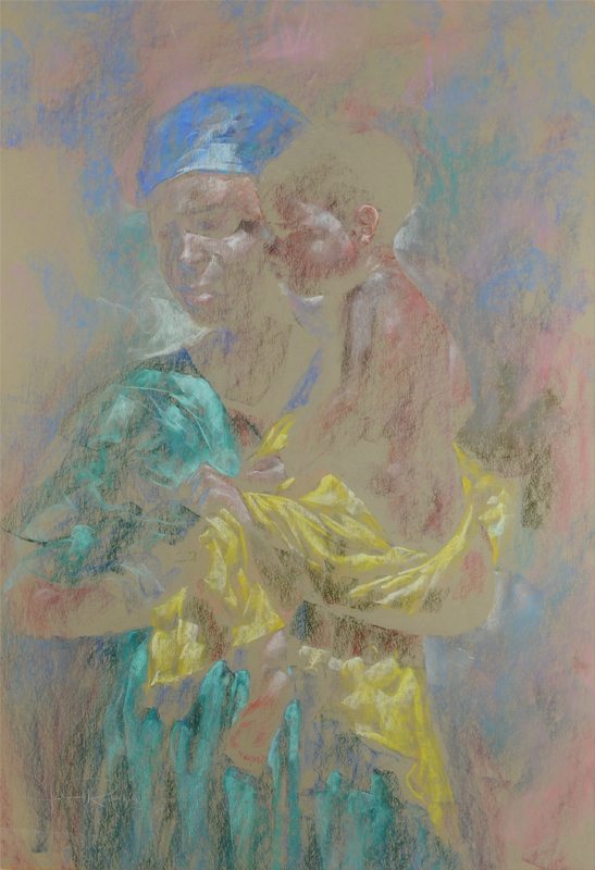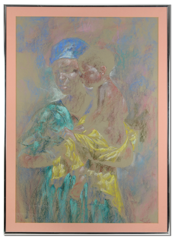 RODRIGUEZ, Alirio, (Venezuelan, 1934- ): Mother & Child, Pastel, Sight size 35 3/4'' x 24 3/4'', signed lower left, dated '81, temporary chrome frame 48 1/4'' x 29 1/4''.