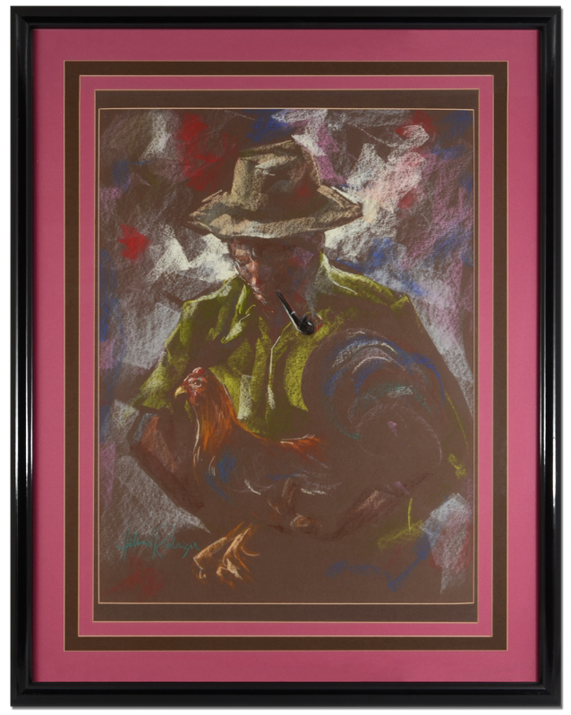RODRIGUEZ, Alirio, (Venezuelan, 1934- ): Man with Chicken, Pastel, Sight size 25 1/2'' x 18 3/4'', signed lower left, black lacquer frame 35'' x 28 1/4''.