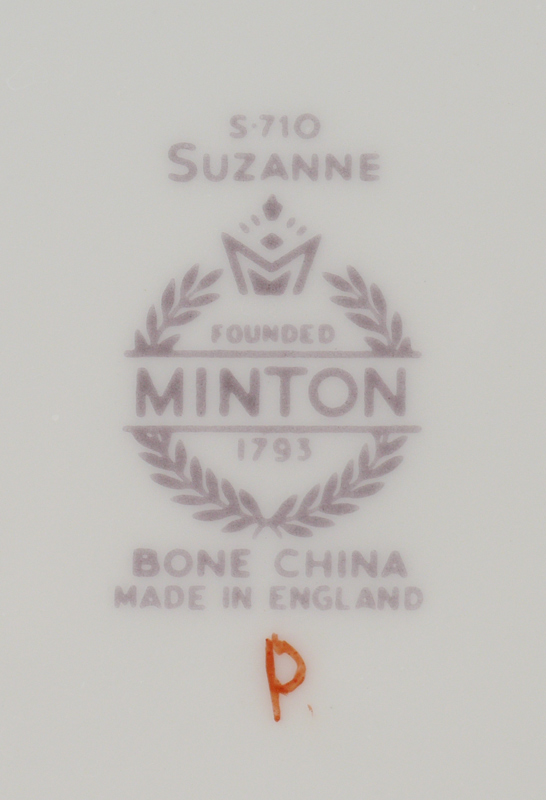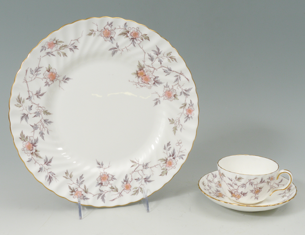 MINTON ''SUZANNE'' FINE CHINA: 33 pieces to include 10 dinner plates (10 3/4''), 12 cups and 11 saucers.