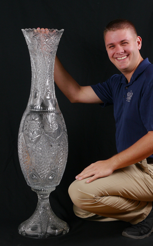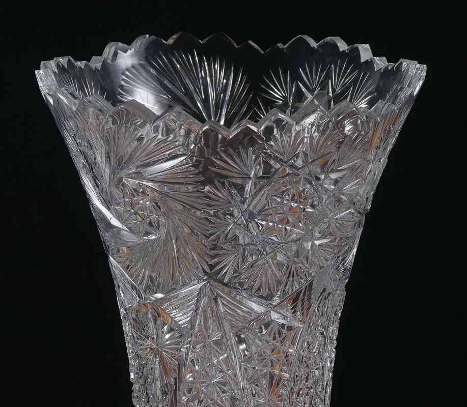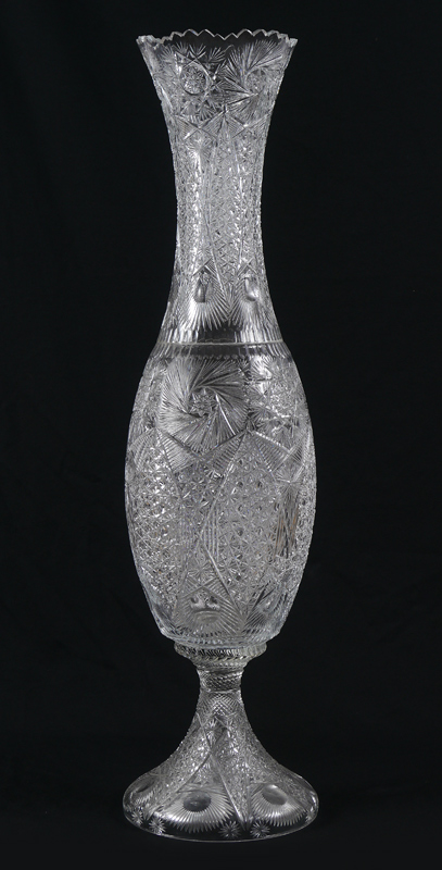 LARGE BOHEMIAN CUT GLASS FLOOR VASE: Intricately cut, 20th century production, overall measures 42 3/4'' h. x 9 1/2''.