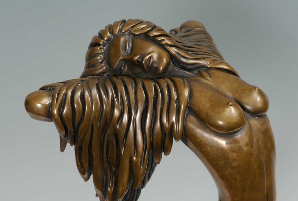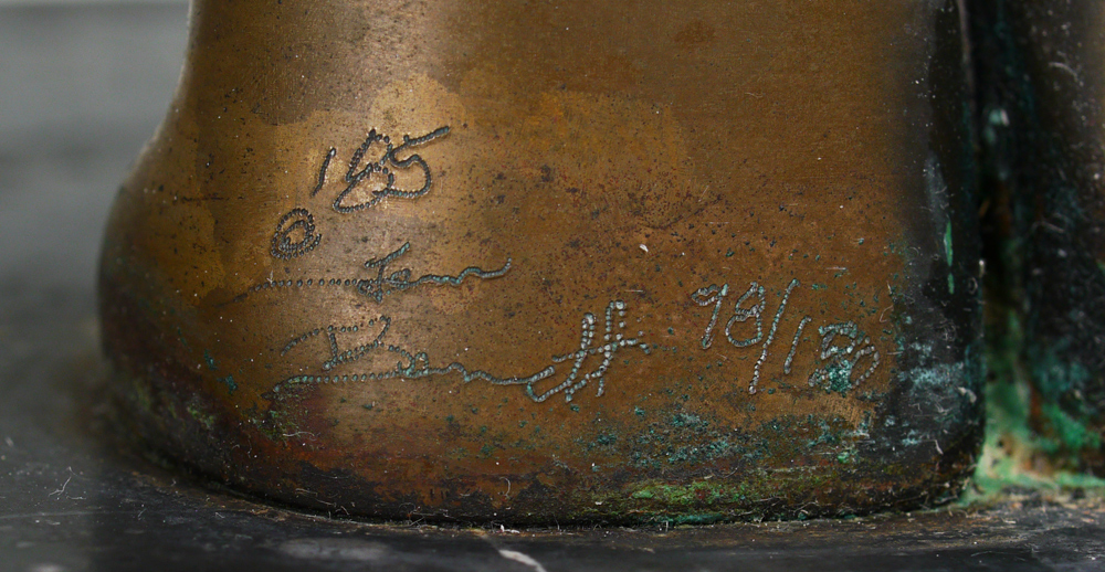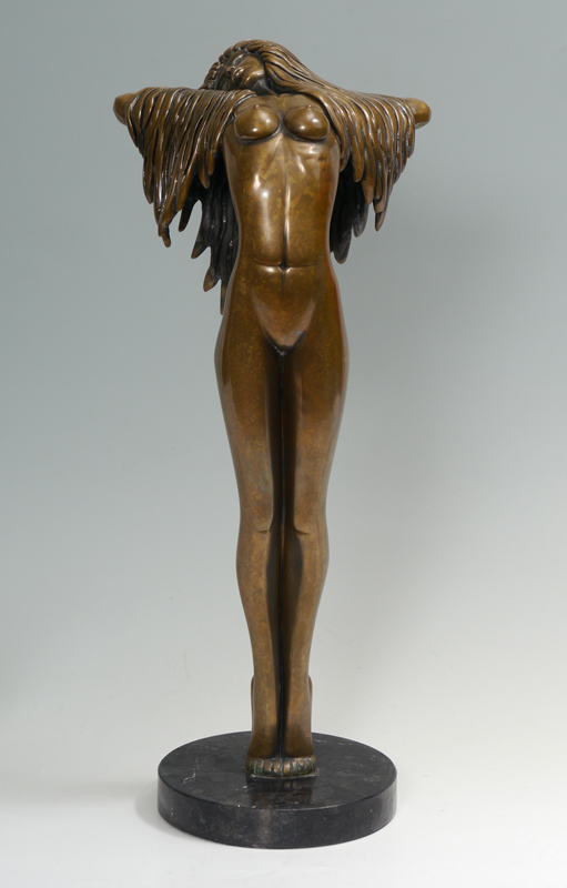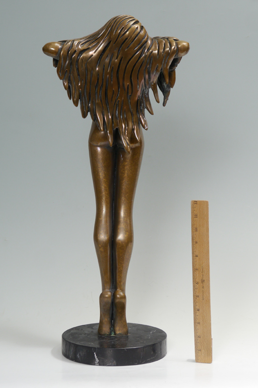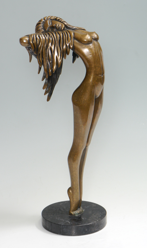 BENNETT, Tom, (American, 20th C.): Young Nude Dancer, Patinated Bronze, 24'' h., 25'' with marble plinth, signed on the foot, dated '85 and numbered 98/150.
