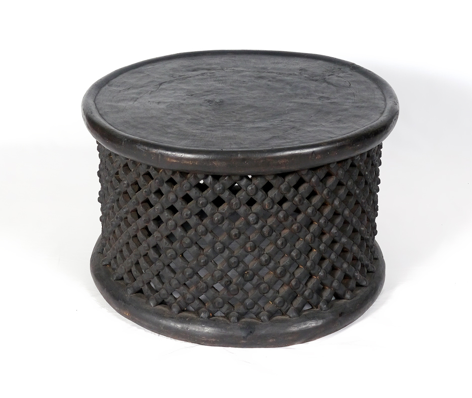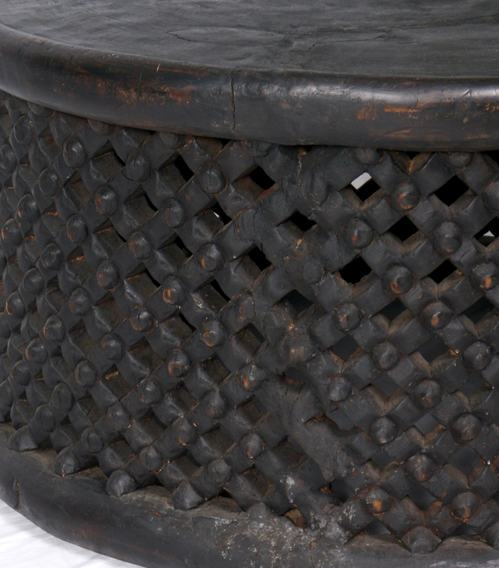 AFRICAN BAMILEKE SPIDER TABLE: West African, Cameroon, carved with spider detail, 18'' h. x 31'' dia.