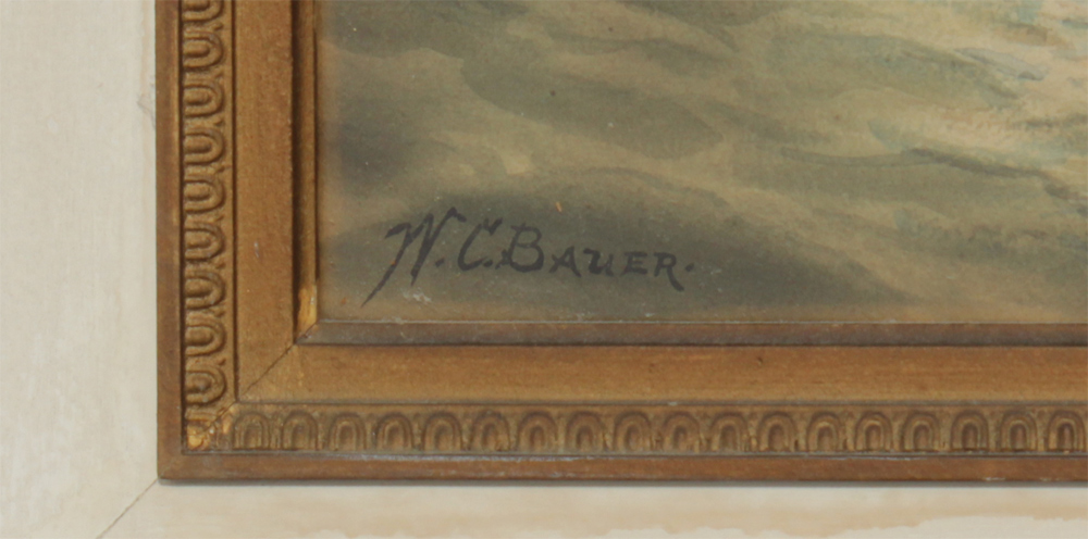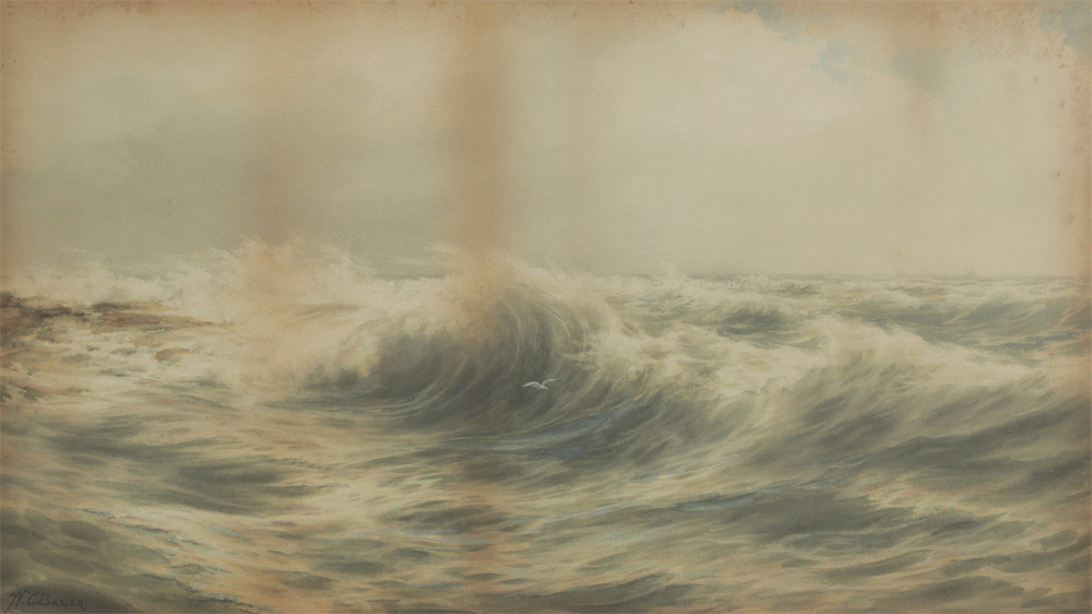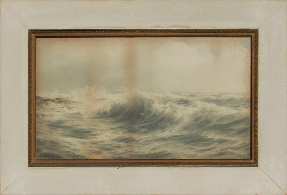 BAUER, William C., (American, 1862-1904): Windswept Coast Surf, Watercolor, 16 1/2'' x 29'', signed lower left, period painted frame 26'' x 38 1/2''.
