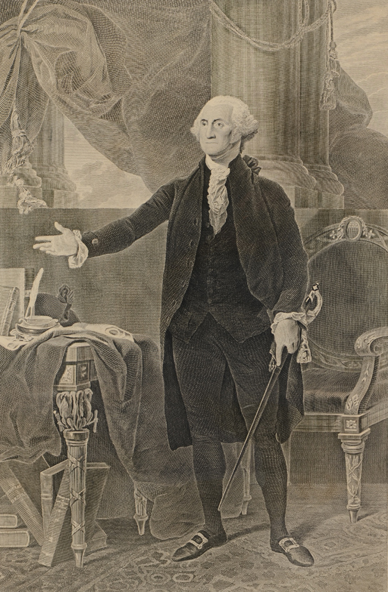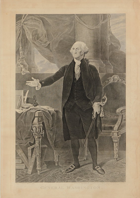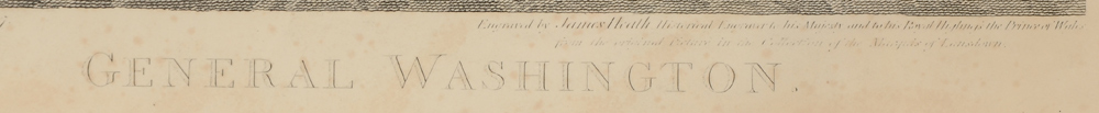 ENGRAVING OF GEORGE WASHINGTON BY JAMES HEATH: ''Historical Engraver to his Majesty and to his Royal Highness the Prince of Wales''. From the original painting by Gabriel Stuart 1797 ''in the Collection of the Marquis of Lansdown'', 22'' x 15'', full length portrait entitled ''General Washington''.