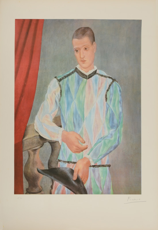 PICASSO, Pablo, (Spanish, 1881-1973): Harlequin, Lithograph, 29 3/4'' x 21 3/4'', pencil signed lower right, numbered 25/60 lower left, unframed.