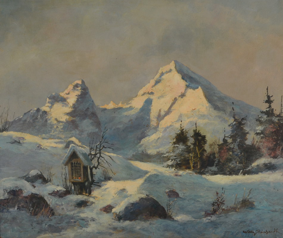 REINHARDT, Willy, (German, 1888-1970): Snowy Alpine Landscape, Oil/Masonite, 15 1/4'' x 18 1/2'', signed lower right, framed, 18'' x 20 1/2''.