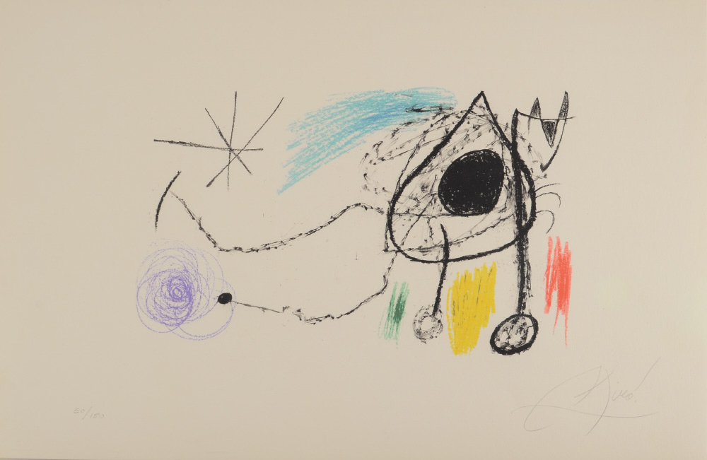 MIRO, Joan, (Spanish, 1893-1983): Sobreteixims I Escultures, Lithograph, 14 7/8'' x 21 1/4'', pencil signed lower right, numbered 50/150 lower left, unframed.