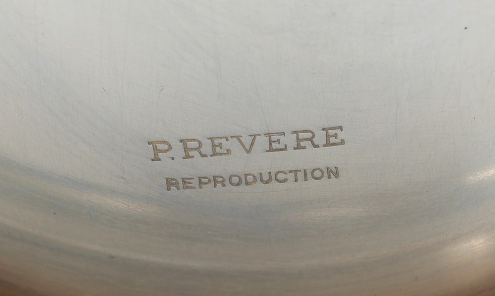 GORHAM STERLING REVERE REPRODUCTION BOWL: Marked on base ''Gorham, Sterling, 41660, 1951 date mark, P. Revere Reproduction''. Monogrammed, 4 1/2'' h. x 9'', approx. 24.6 troy oz.