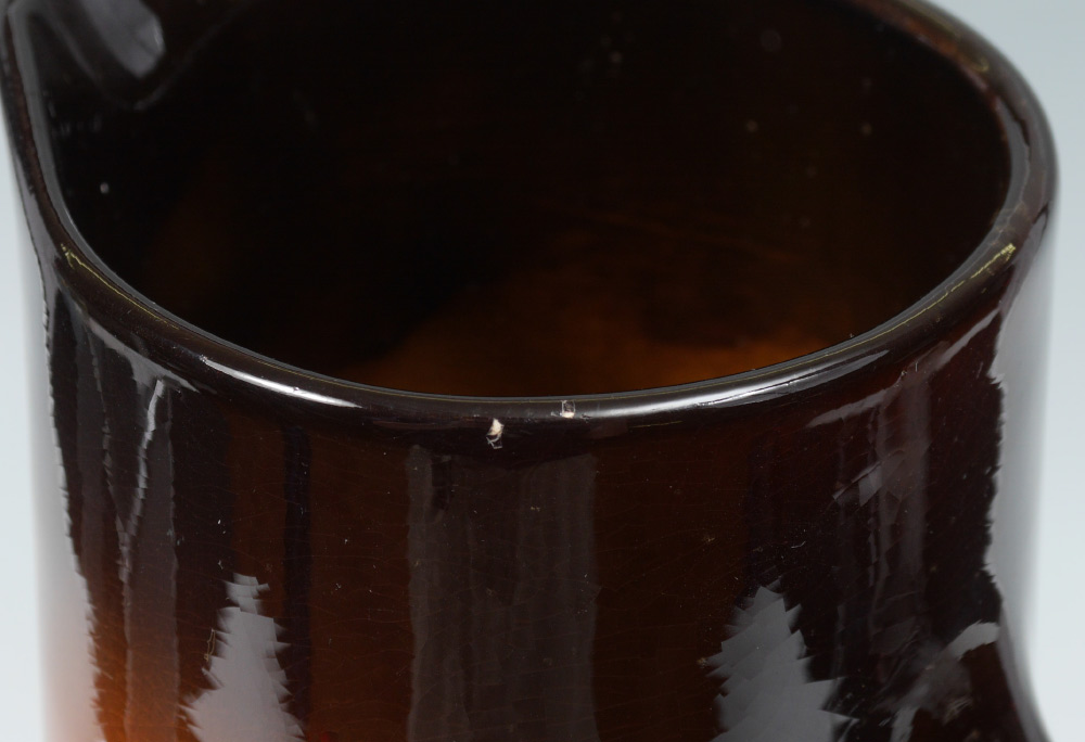 CONDITION: Chip at base, two flea bites to rim, overall crazing.