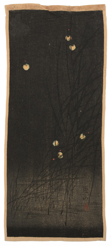 SOZAN, Ito, (Japanese, 1884-?): Fireflies, Woodblock, 13 1/4'' x 5 7/8'', unframed, paper has been creped.