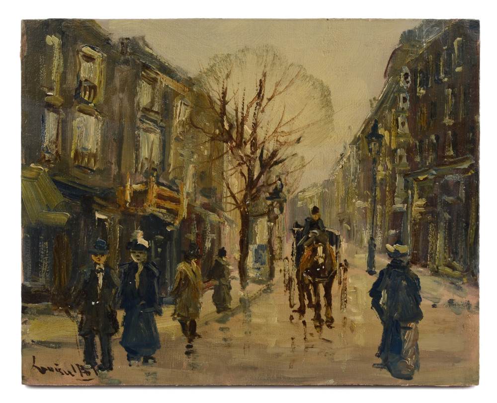 VAN DER POL, Louis, (Dutch, 1896-1982): Paris Street Scene with carriage & figures, Oil/Wood Panel, Signed Lower Left, 9 1/8'' x 11 3/4'', unframed.