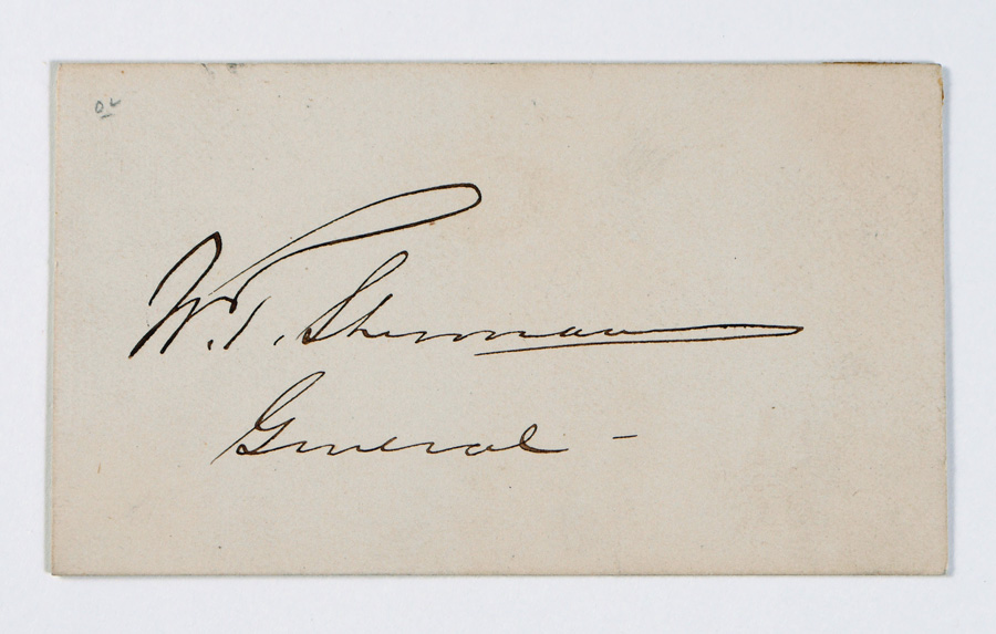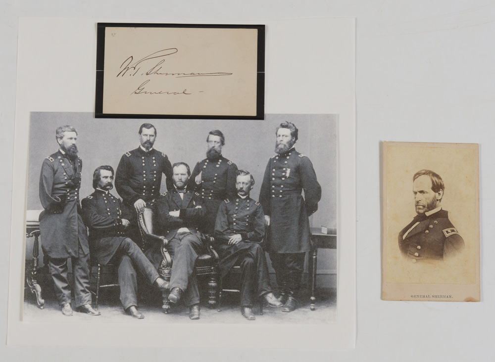 GENERAL WILLIAM T SHERMAN CLIP AUTOGRAPH: Signed 2 1/4'' x 4'' card by Civil War general William T. Sherman and CDV.