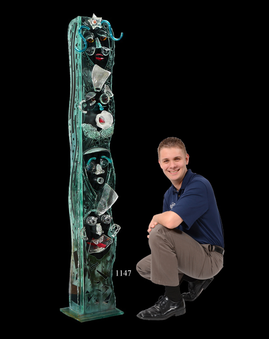 PELISH, Susan, (American, 20th Century): 4 figural face totem with multi-hued frosted, etched, welded and upcycled glass. Overall measures 86 1/4'' h. x 14 1/4'' x 14 1/4''.