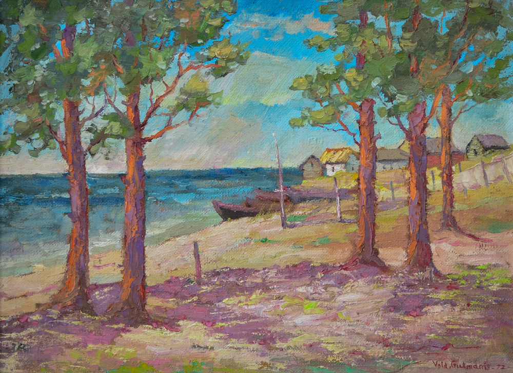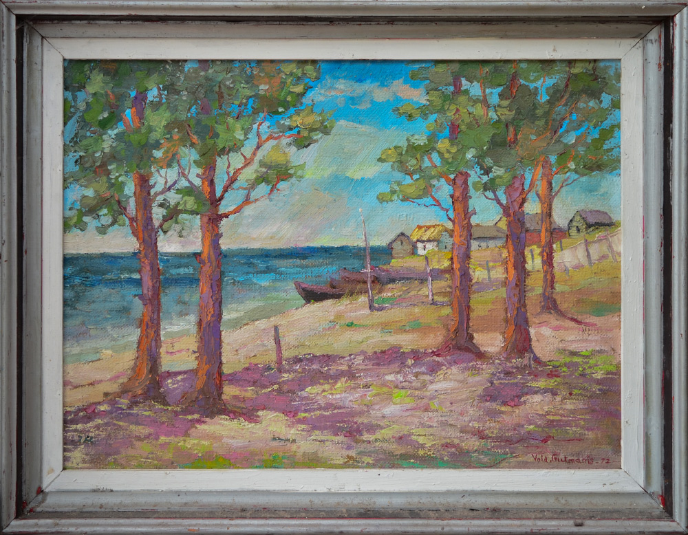 GUTMANIS, Voldemars, (Latvian 1904-1988): Beached Boats and Fishing Village, Oil/Canvas, 22'' x 30'', signed Vold.Gutmanis and dated 72' lower right, framed, 26'' x 34''.