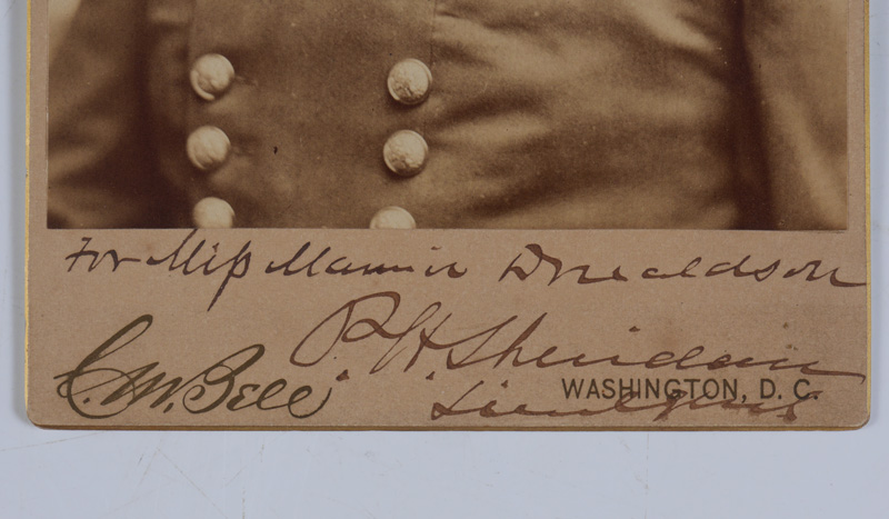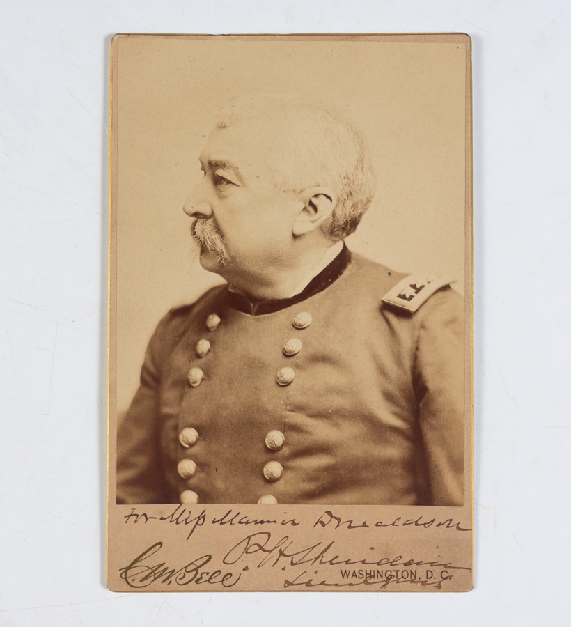 CIVIL WAR GENERAL PHILLIP SHERIDAN SIGNED CABINET PHOTO: Signed with illegible dedication, P. H. Sheridan, 6 1/2'' x 4 1/4''.