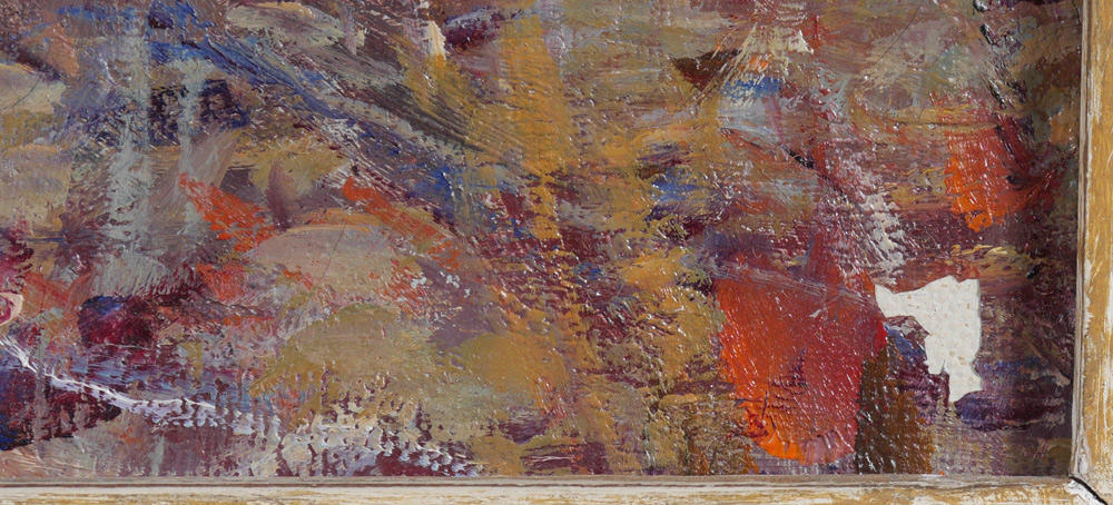 CONDITION: Minor craquelure, fleck of paint loss in lower right corner, frame has minor wear.
