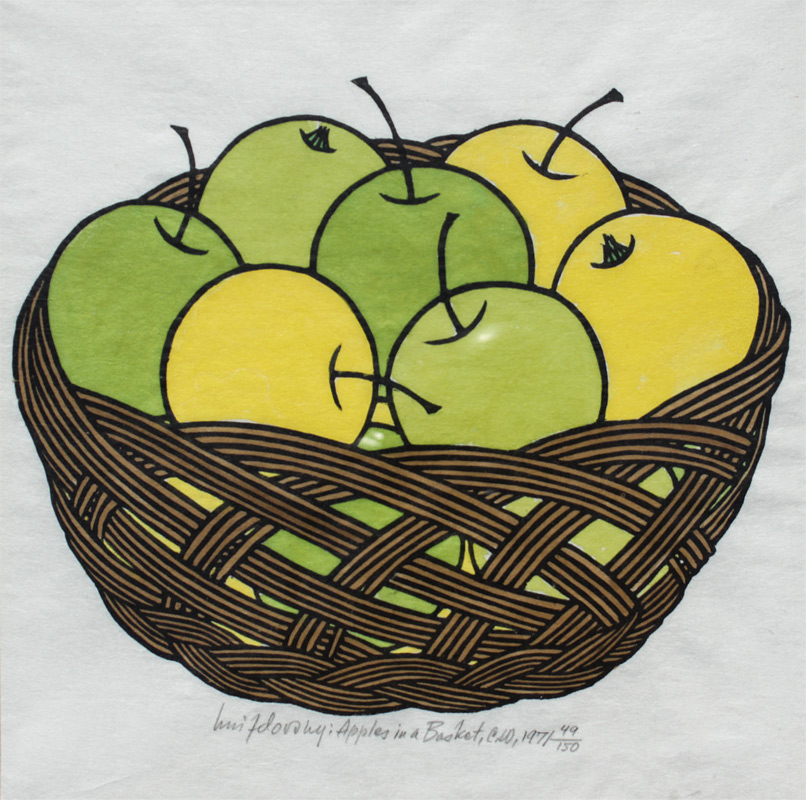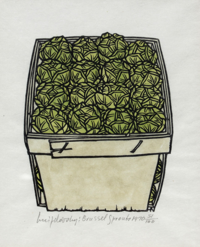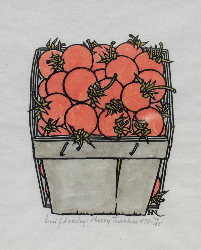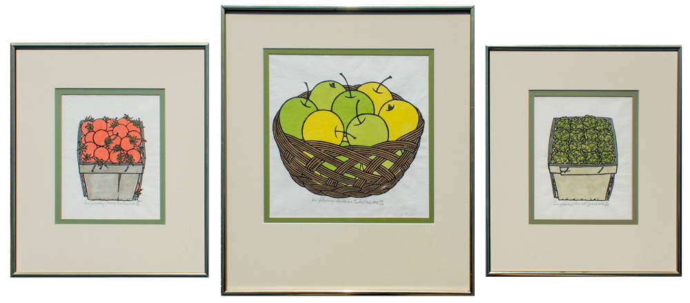 HNIZDOVSKY, Jacques, (American, 1915-1985): 1) ''Apples in a Basket'', sight size 10'' x 10'', framed, 18 1/2'' x 16 1/2'',signed, titled, dated 1971 and numbered 41/150; 2) ''Brussel Sprouts'', sight size 7 1/2'' x 6 1/2'', framed, 14 1/2'' x 15'', signed, titled, dated 1970 and numbered 51/100; 3) ''Cherry Tomatoes'', sight size 8'' x 6 1/2'', framed, 14 1/2'' x 13'', signed, titled, dated 1970 and numbered 36/100.