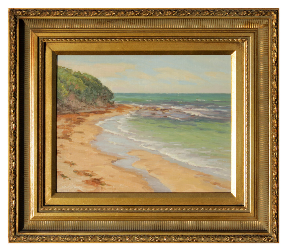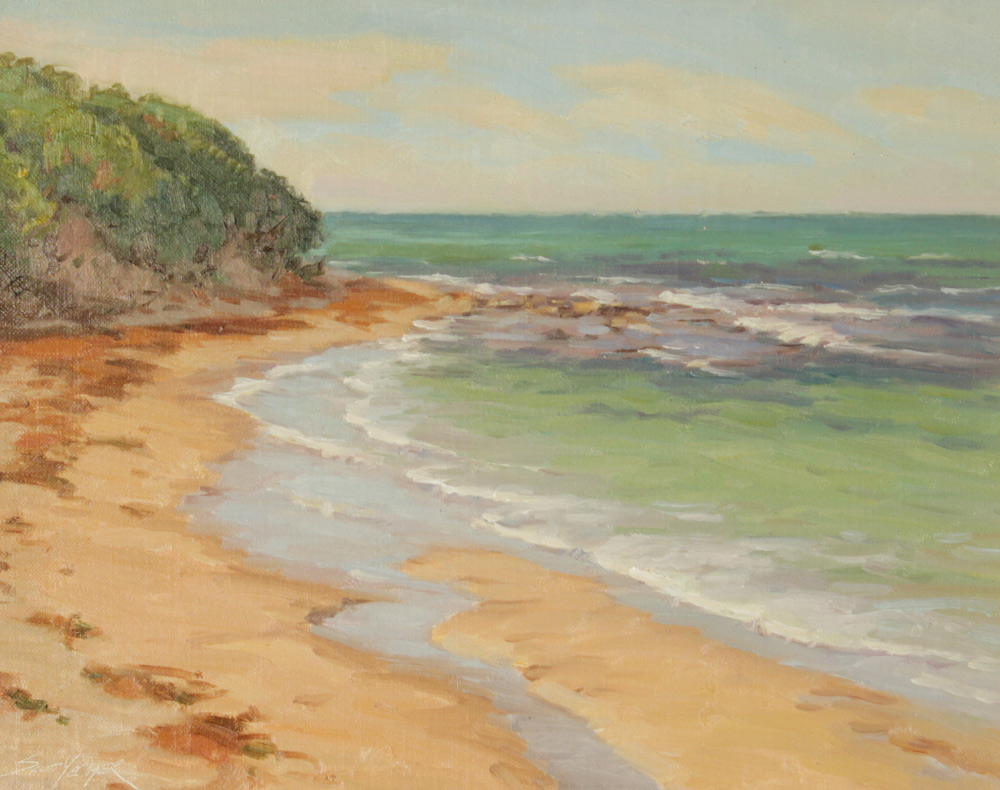 YEAGER, Scott, (American, 1965-): Tropical Shoreline, Oil/Canvas/Masonite, 11'' x 14'', signed lower left, framed, 18'' x 21''.