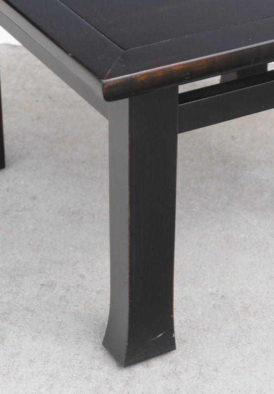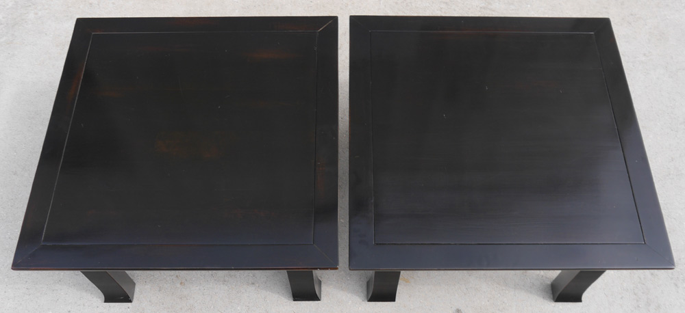 2 SWAIM FURNITURE CONTEMPORARY SIDE TABLES: Manufactured by Swaim furniture, makers of fine contemporary and transitional furniture, beautifully and artfully crafted in High Point, North Carolina. 20 1/2'' h. x 32'' x 32''.