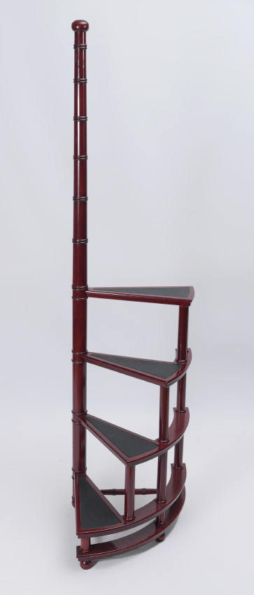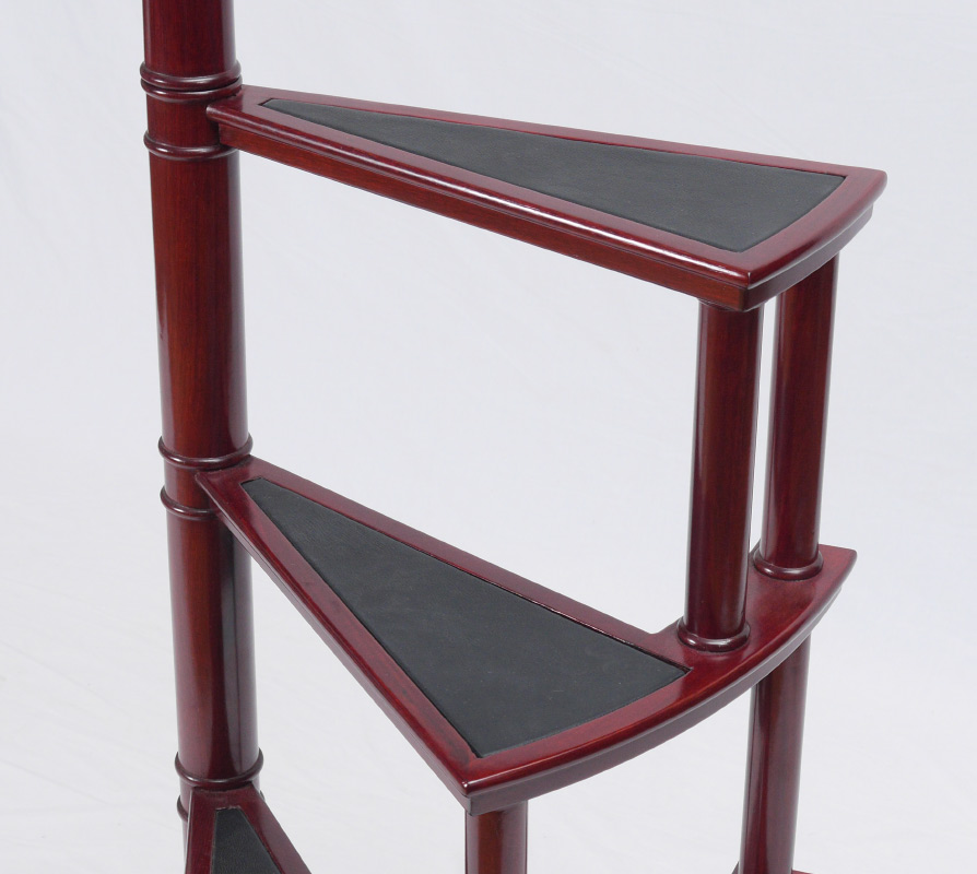 OTTO ZENKE DECORATIVE MAHOGANY LIBRARY STAIRS: Four stair spiral stairs with leather inset treads on steps. Top step 36'' from ground, overall approx. 70'' tall x 17'' wide.