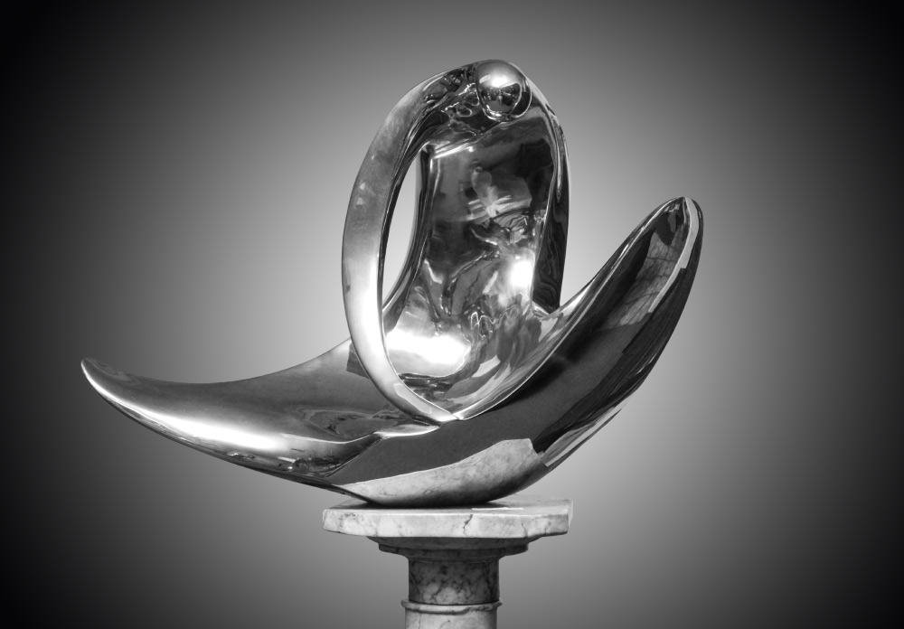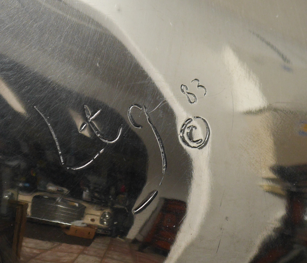 CHROME PLATED BRONZE SCULPTURE OF SEATED FIGURE LTG 83: Signed LTG and dated '83, 16'' h. x 21'' w.