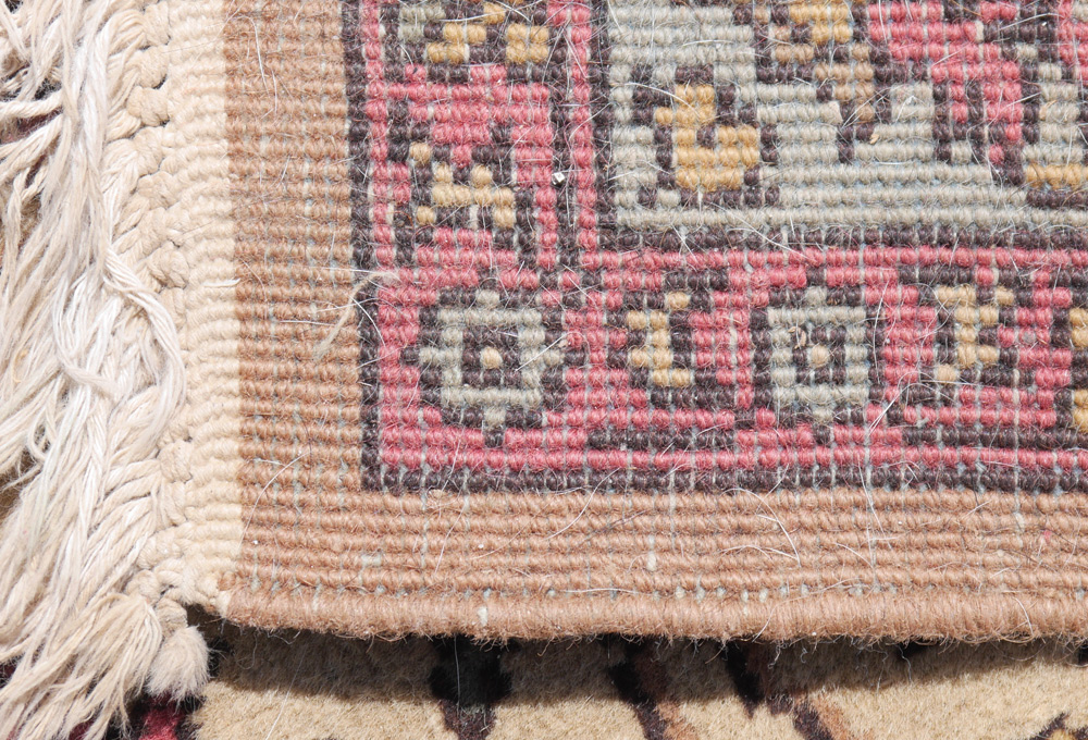 CONDITION: The ends and fringes show signs of wear and this rug would sparkle after a good cleaning.