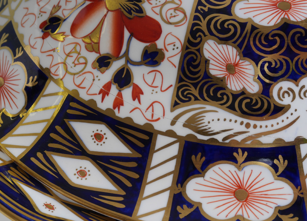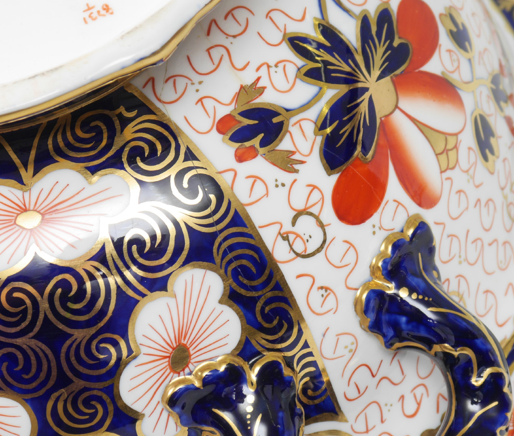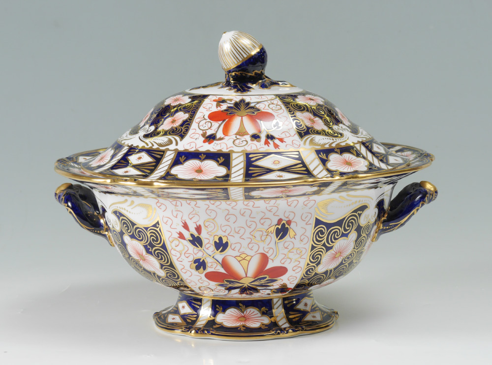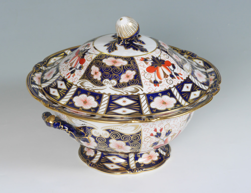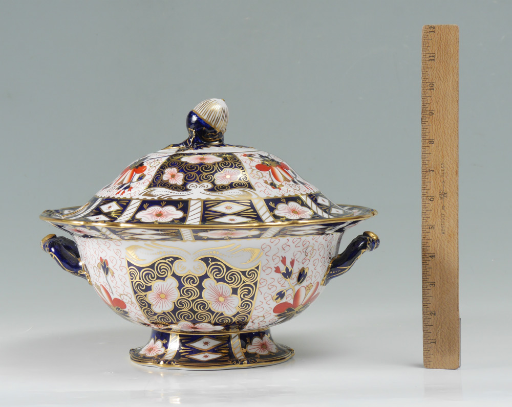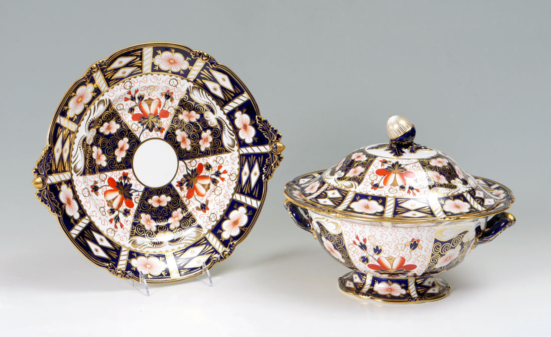 ROYAL CROWN DERBY IMARI TUREEN AND UNDERPLATE: For Tiffany & Co. The underplate or round platter measures 14 1/2'' dia. The soup tureen is 9' tall x 13'' dia.