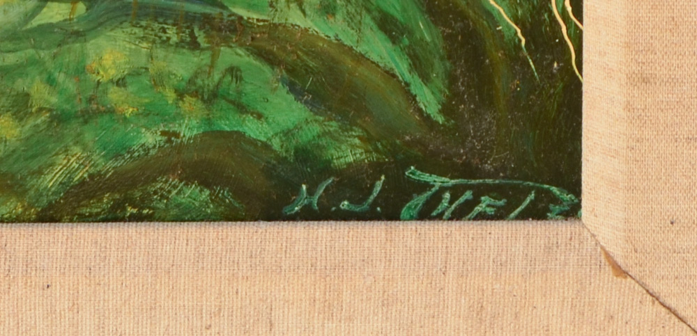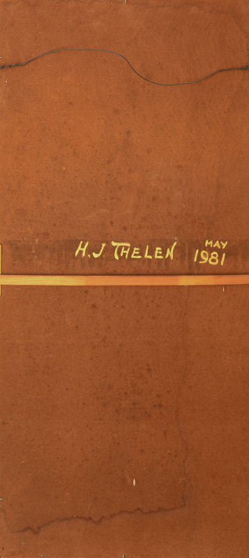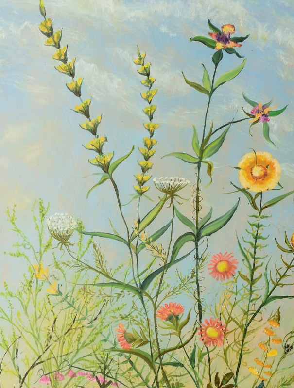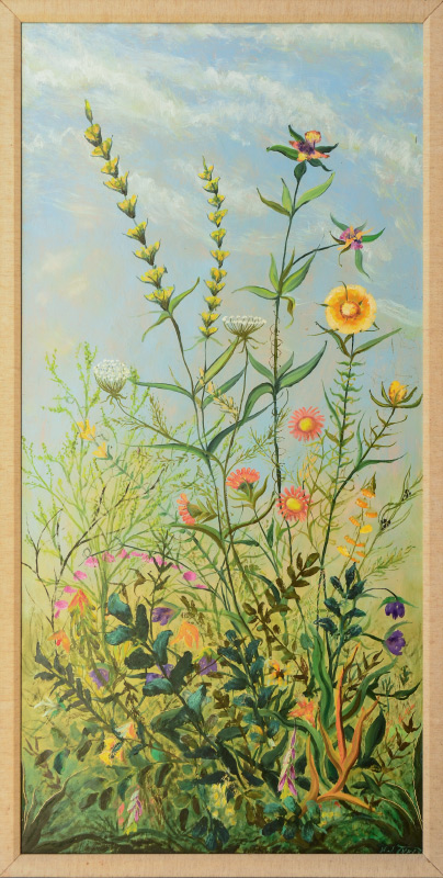 THELEN, Hubert J., (American, 20th Century): In a field of Flowers gazing at the sky, Oil/Masonite, signed lower right, signed and dated May 1981 verso, 47'' x 22'', framed 49.5'' x 25''. Provenance: Hubert J. Thelen Estate.