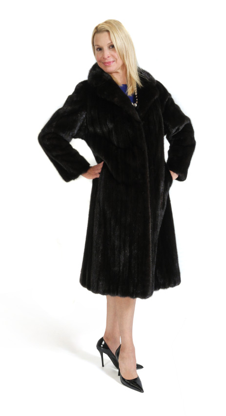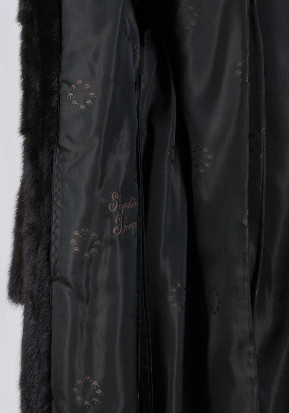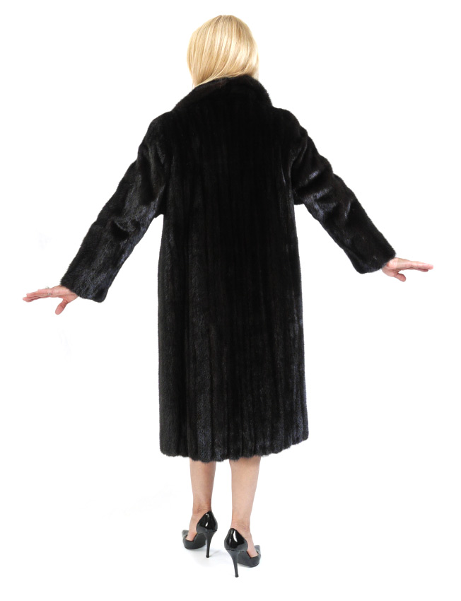 FULL LENGTH RANCH MINK COAT: Fully lined with embroidered pattern. 42'' shoulder to hem, 22'' sleeves.