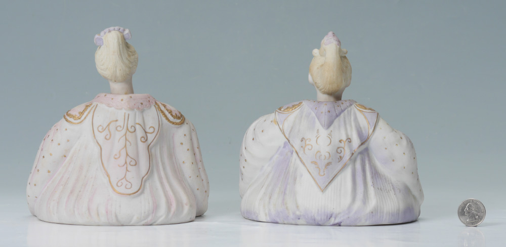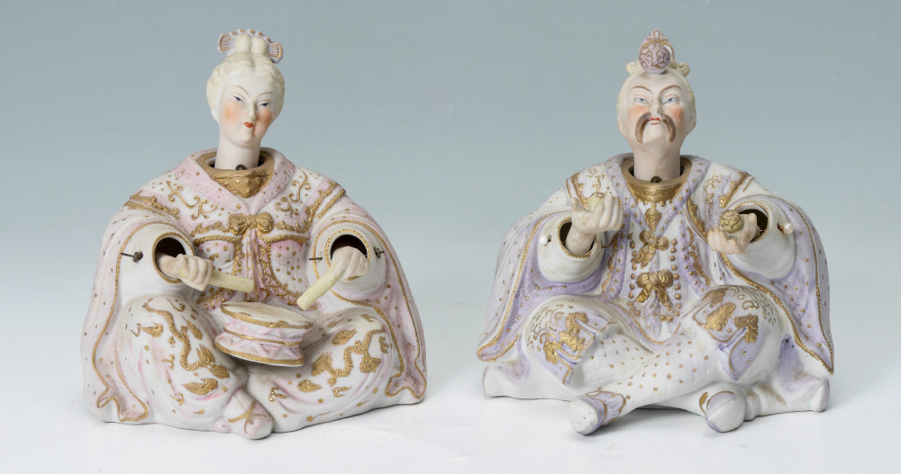 ARDAULT BISQUE NODDER FIGURES: Man and woman dressed as Asian figures. Measure approx. 6 1/2'' x 6 1/2''.
