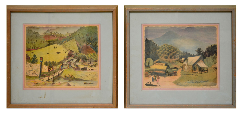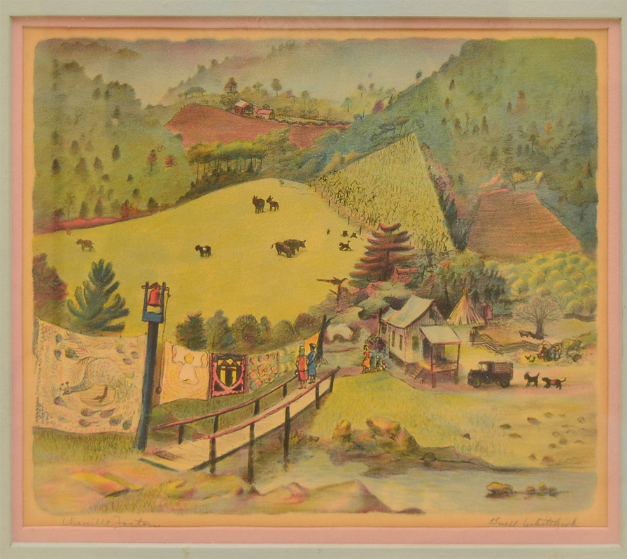 WHITEHEAD, Buell, (American, 1919-1993): 2 Lithographs, 1) ''Chenille Factory'', sight size 10 1/2'' x 12 3/4'', pencil signed lower right, titled lower left, framed, 18'' x 19 1/2''; 2) ''Apple Market'', sight size 10 1/2'' x 12 3/4'', pencil signed lower right, titled lower left, framed, 18'' x 19 1/2''.