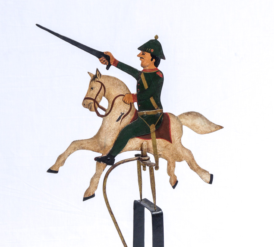 AUTHENTIC MODELS SKY HOOK OF A HESSIAN SOLDIER: Balance toy figure of a Hessian cavalry soldier by Authentic Models. Overall assembled measures 25 1/2'' h. x 13'' x 4 1/2''.