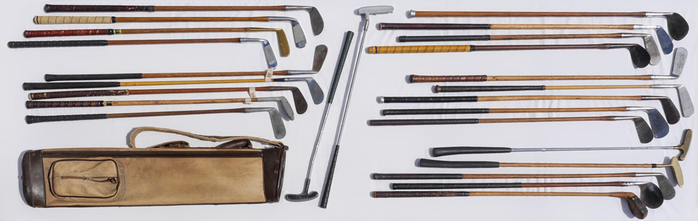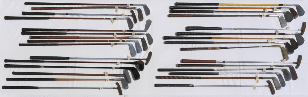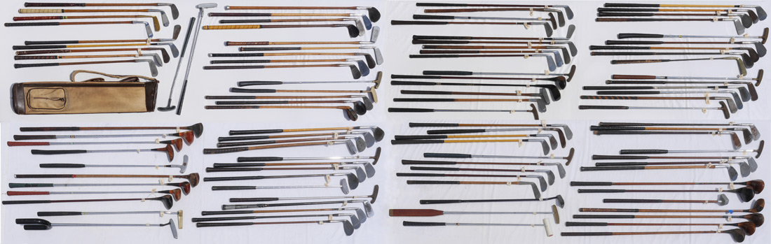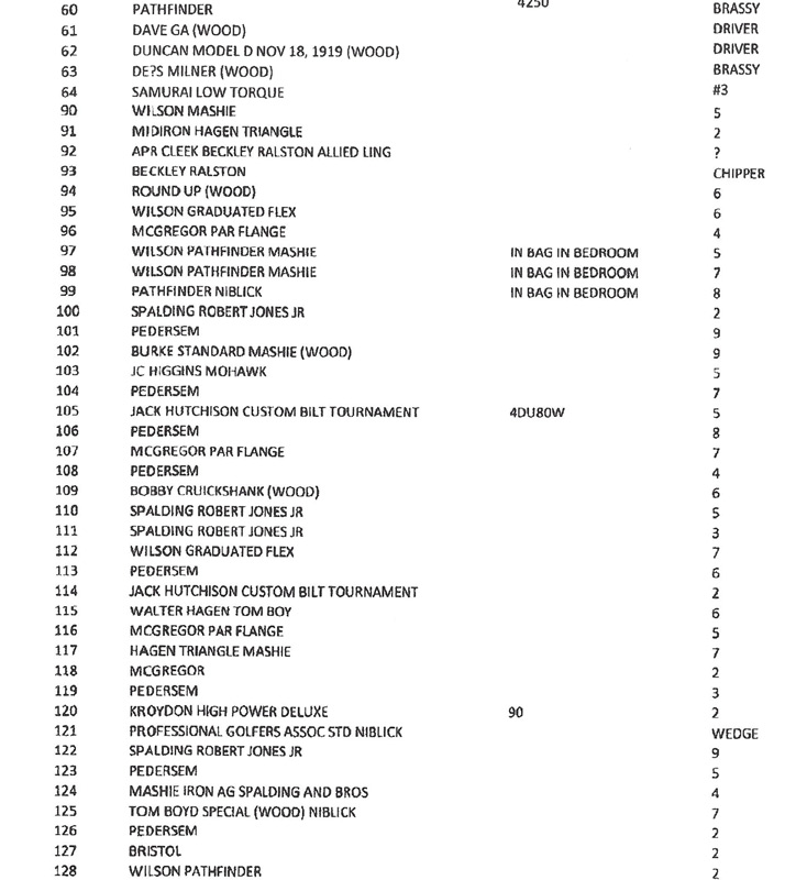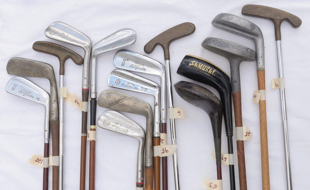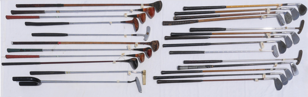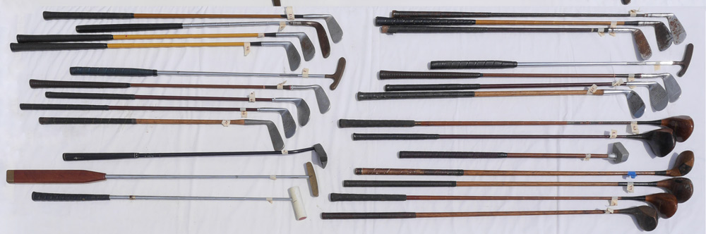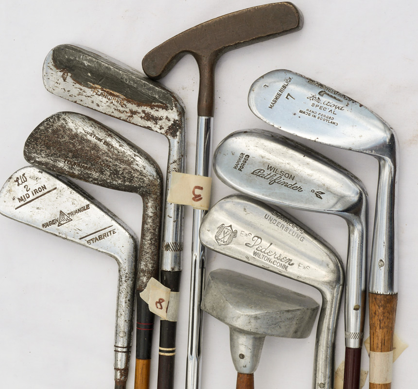 APPROX 106 VINTAGE & ANTIQUE GOLF CLUBS: A lifetime collection to include vintage and antique clubs, metal and wood shafts, drivers, putters, and irons in varying states of condition. Makers to include Spalding, Wilson, Acushnet, Pathfinder, Duncan, McGregor, Burke, Hagen, Bristol, Pedersem and more. A partial listing of clubs is available upon request. We cannot guarantee all clubs listed are present.