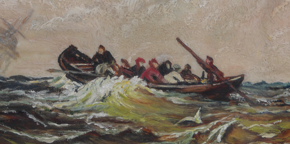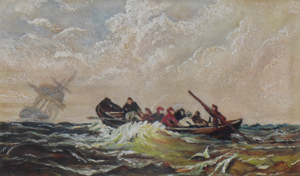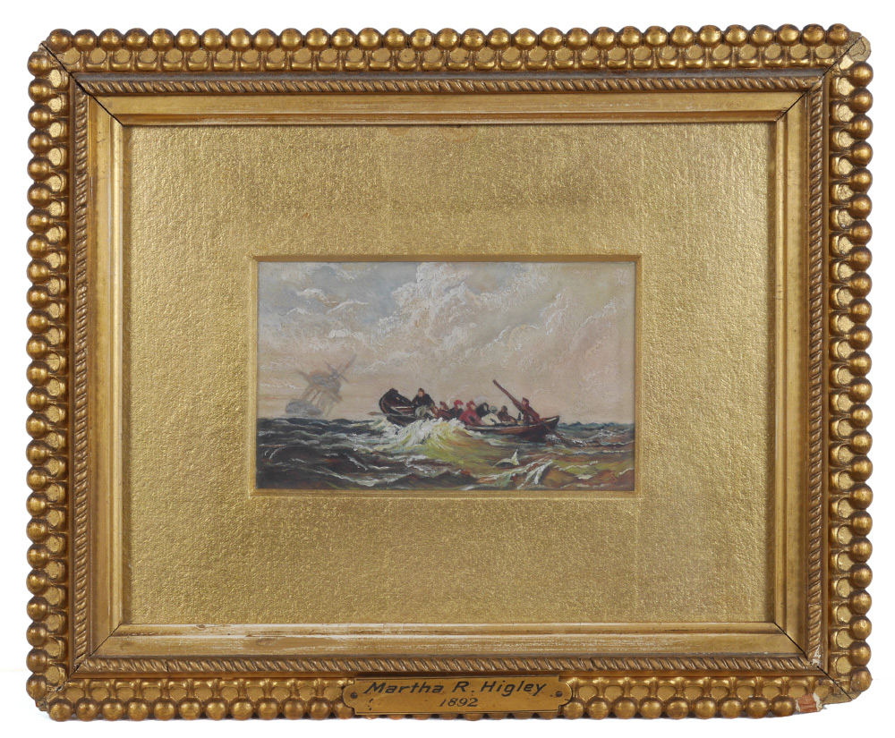MARTHA HIGLEY SHIPWRECK PAINTING: Oil/Board, sight size 3'' x 5'', framed, 9'' x 11''.