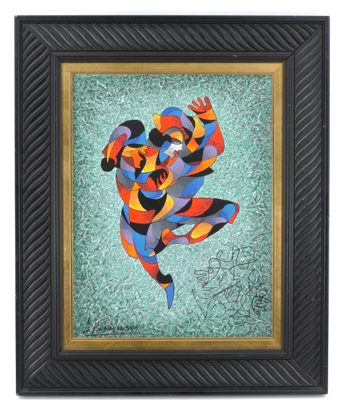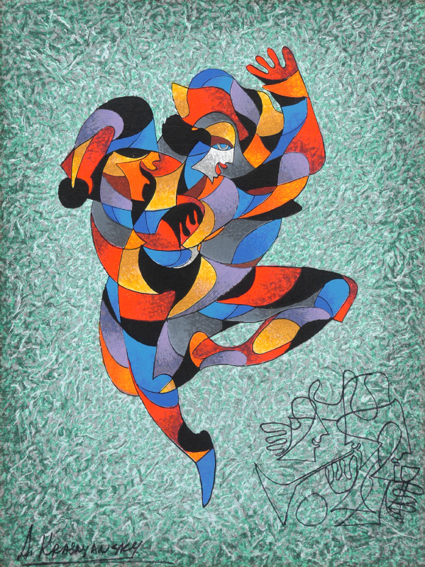 KRASNYANSKY, Anatole, (American, 1930-): ''Dancing a Jig'', Serigraph with Ink Drawing on Linen, 17 3/4'' x 13'', signed lower left, numbered 14/50 verso, framed, 25 1/2'' x 21'', label verso.