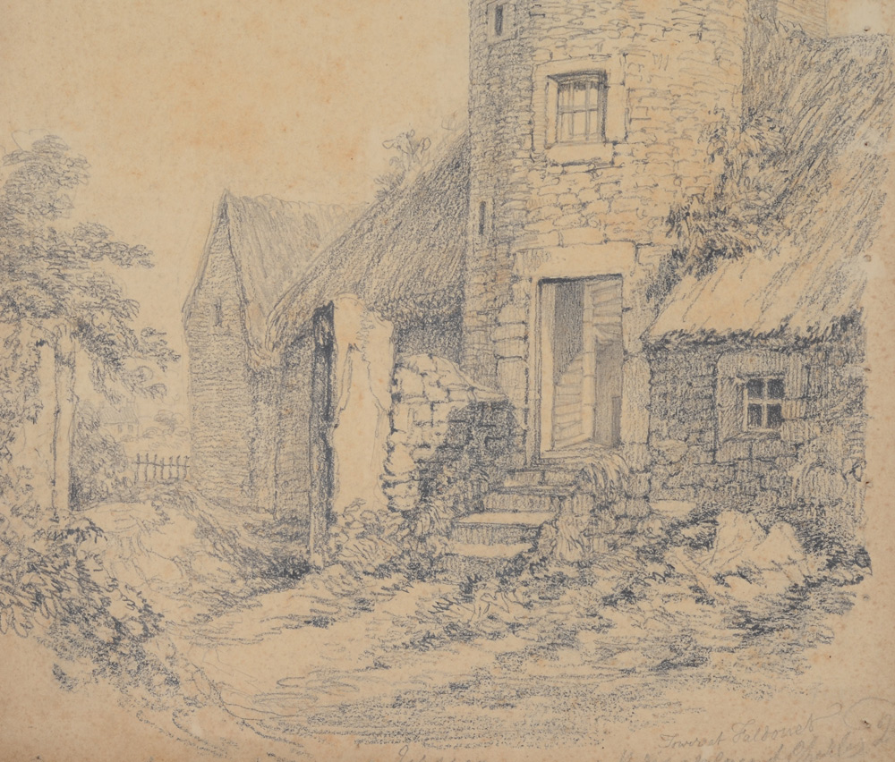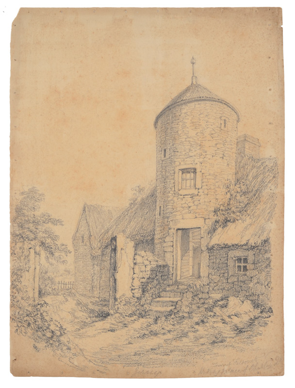 DRAWING ATTRIBUTED TO J.M.W. TURNER FROM THE ESTATE OF JOHN ANDERSON JR. OF ANDERSON GALLERIES IN NEW YORK: ''Jersey'', tower at Faldouet, Drawing, 14'' x 10 3/4''. Mr. Anderson is the author of ''The Unknown Turners'', Scribner Press, 1926, New York, New York. All artworks are from his personal art collection originally sold in Litchfield Connecticut.