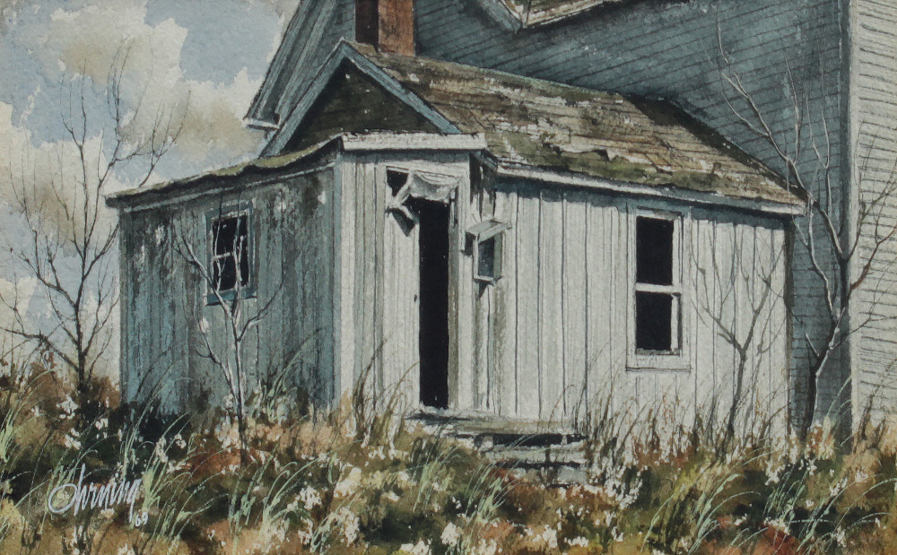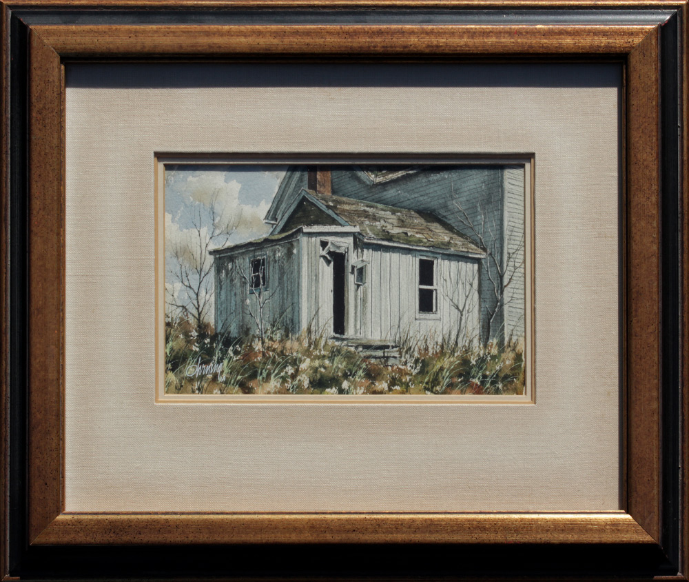 OHRNING, Rudolph, American, 20th Century): ''Old House'', depiction of a white clapboard house in a winter landscape, Watercolor, signed and dated lower left, 5 3/4'' x 9 1/4'', matted and framed under glass, 15 1/4'' x 18''. Purchased from the artist 1969.