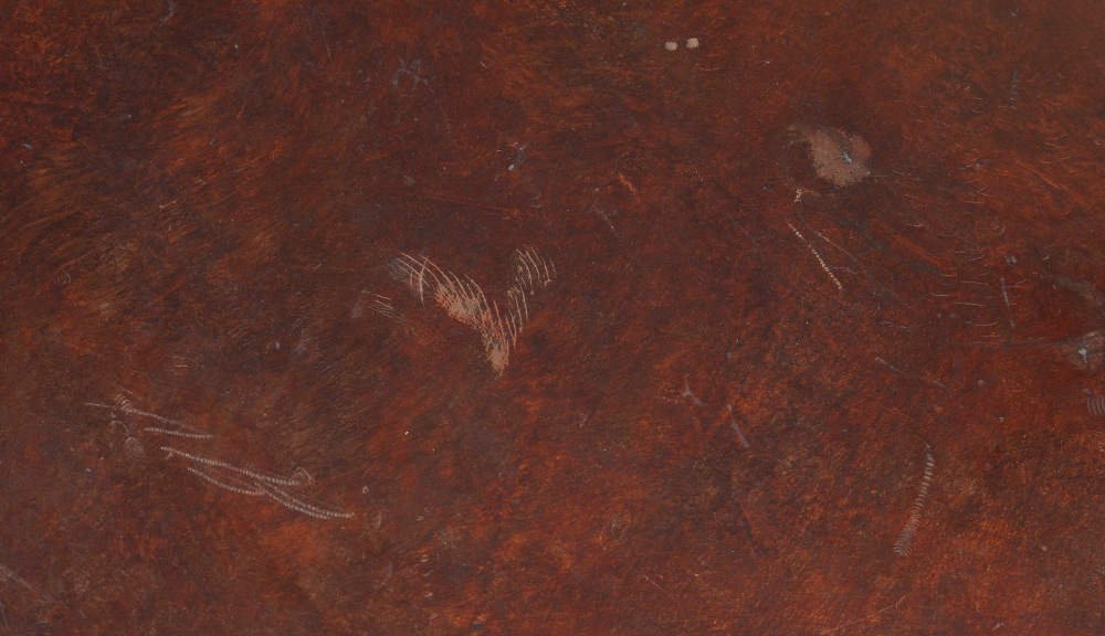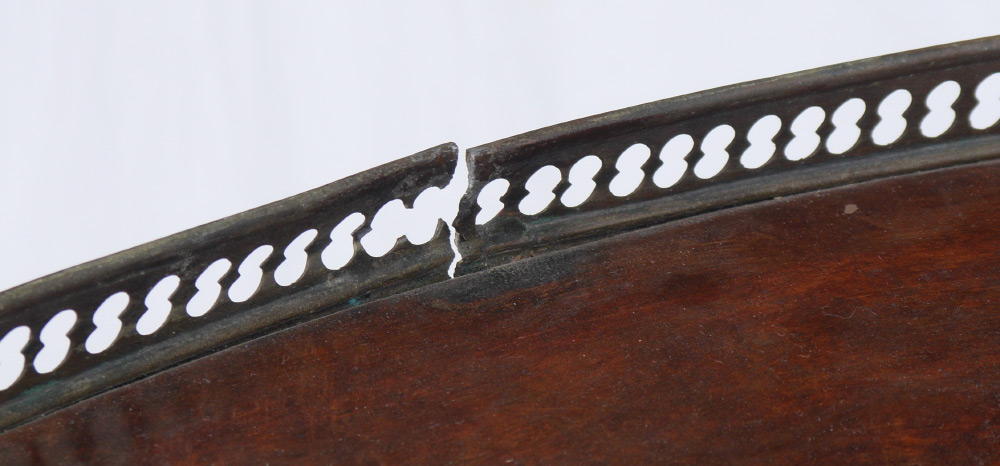 CONDITION: Scratches and abrasions to leather, break to gallery, other wear consistent with age and use.