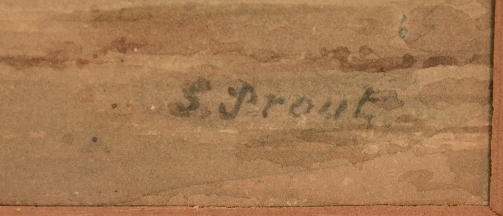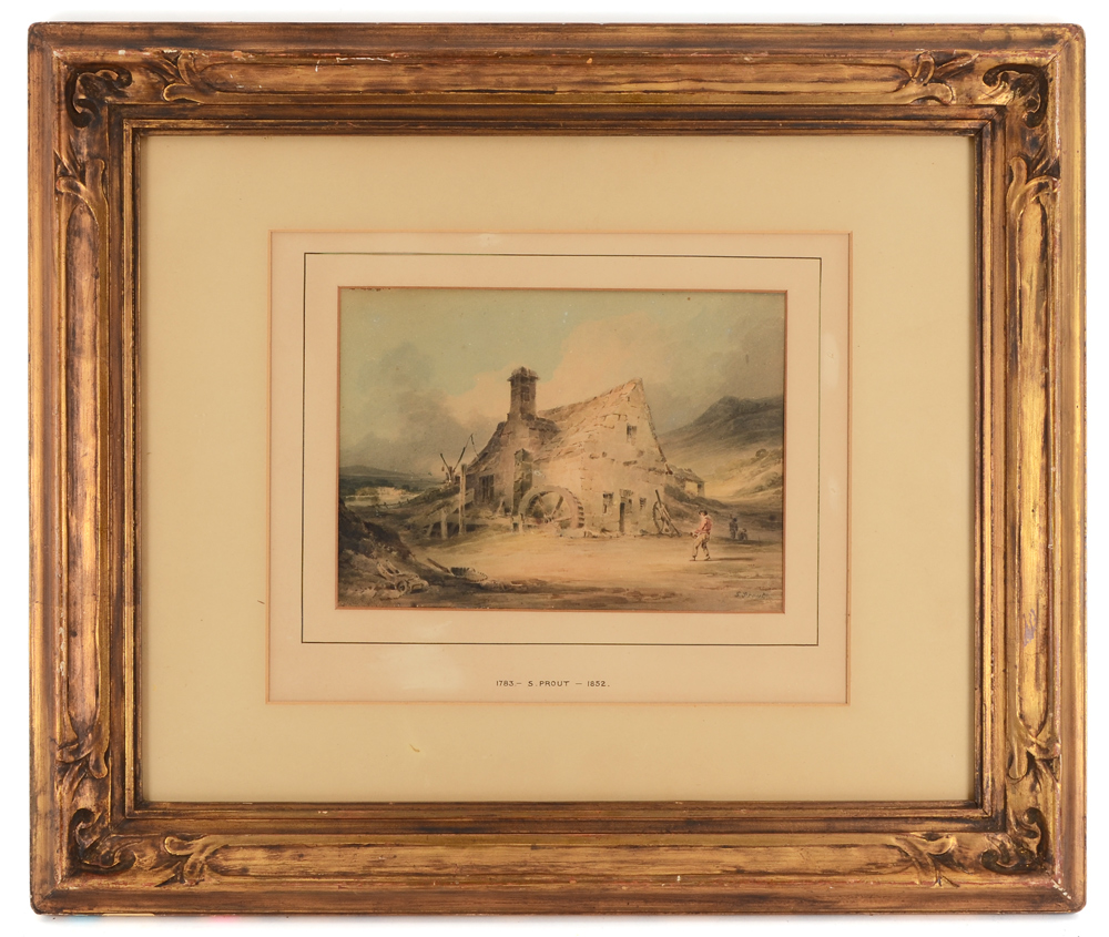 PROUT, Samuel, (British, 1783-1852): Watercolor, 7 1/8'' x 10 5/8'', signed lower right, titled verso Forge Near Dolgelly, Merionethshire, carved and gilded frame, 20 1/2'' x 25''.