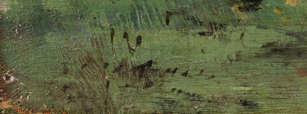 CONDITION: Scattered abrasions, craquelure throughout, several flecks of loss. Sold as is.
