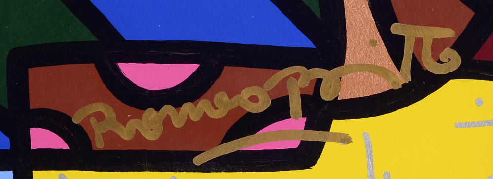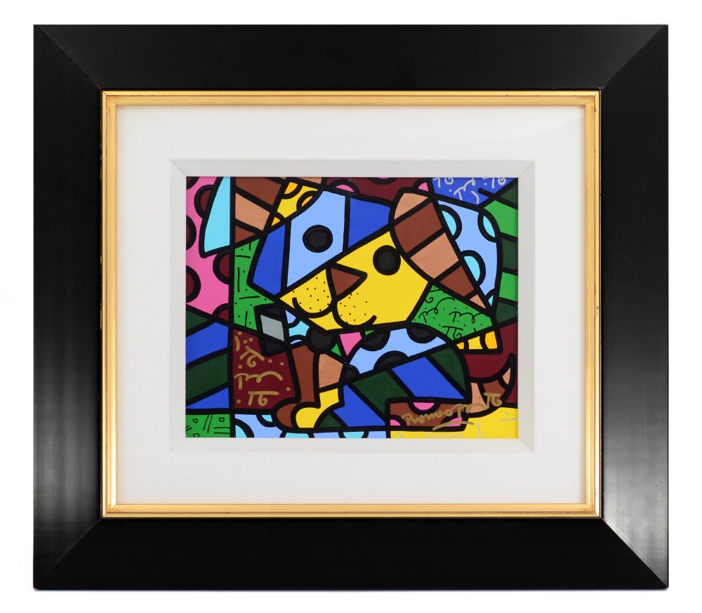 BRITTO, Romero, (Brazilian, 1963- ): ''Yellow Dog'', Acrylic/Gouache/Board, sight size 10 1/4'' x 13'', signed lower right, custom framing, 23'' x 26''.