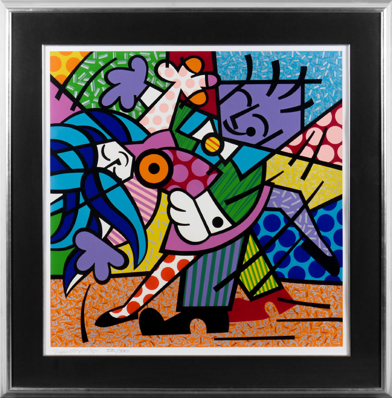 BRITTO, Romero, (Brazilian, 1963- ): ''Dancers'', Serigraph, sight size 37 1/2'' x 37 1/2'', pencil signed lower left and numbered XX of XX, custom silver gilt frame, 49 1/4'' x 49 1/4''.