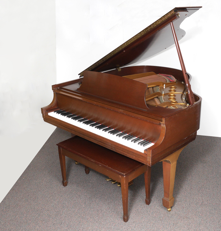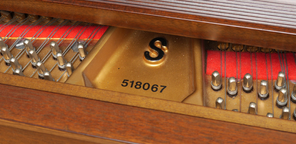 STEINWAY & SONS MODEL S BABY GRAND PIANO: Mahogany case, serial number 518067, dates to approx. 1990. The smallest of the grand pianos by Steinway & Sons and perfect for any house or apartment. Overall measures 38 1/4'' x 57'' x 61 1/2''. Sold with matching bench, 18 3/4'' h. x 35'' x 14 1/2''.