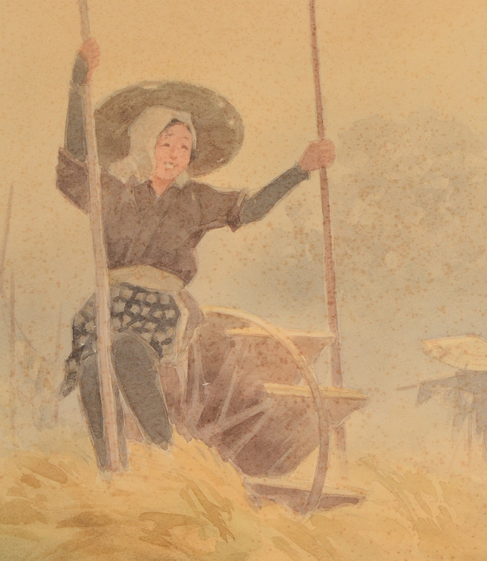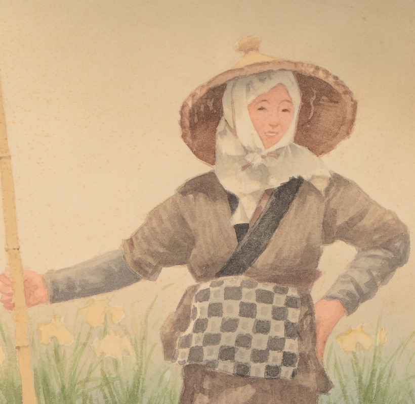 TERAUCHI, Fukutaro, (Japanese, 1891-): 2 Watercolors Depicting Young Female Workers in the Field, each measures 16'' x 11 1/2'', signed, unframed.